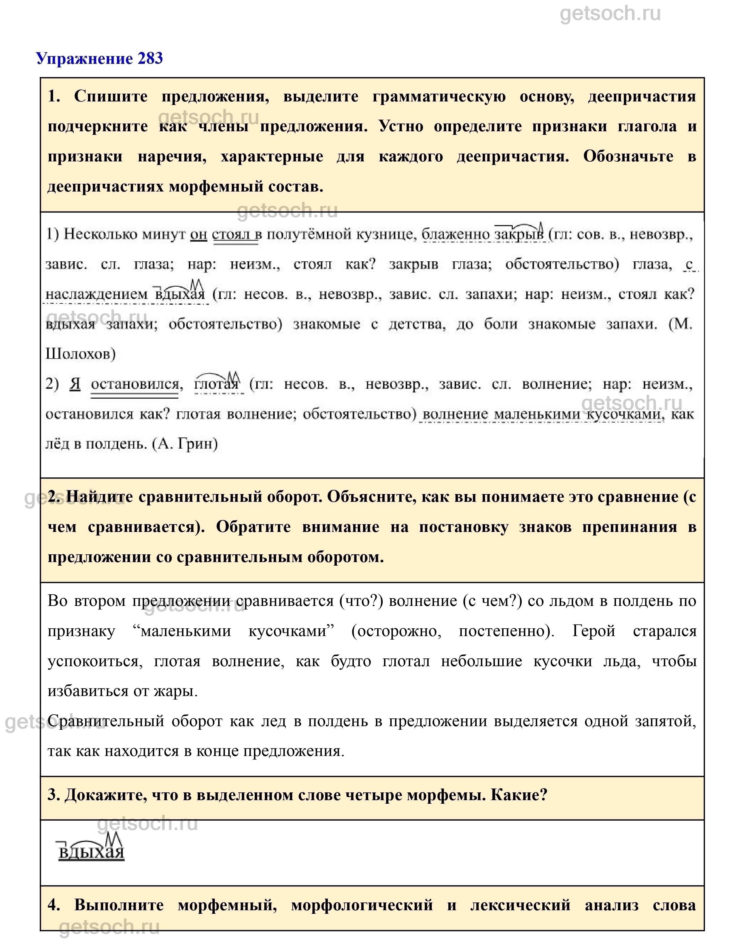 Рассмотрим ответы на Упражнение 283 из учебника по русскому языку для 7 класса Разумовской