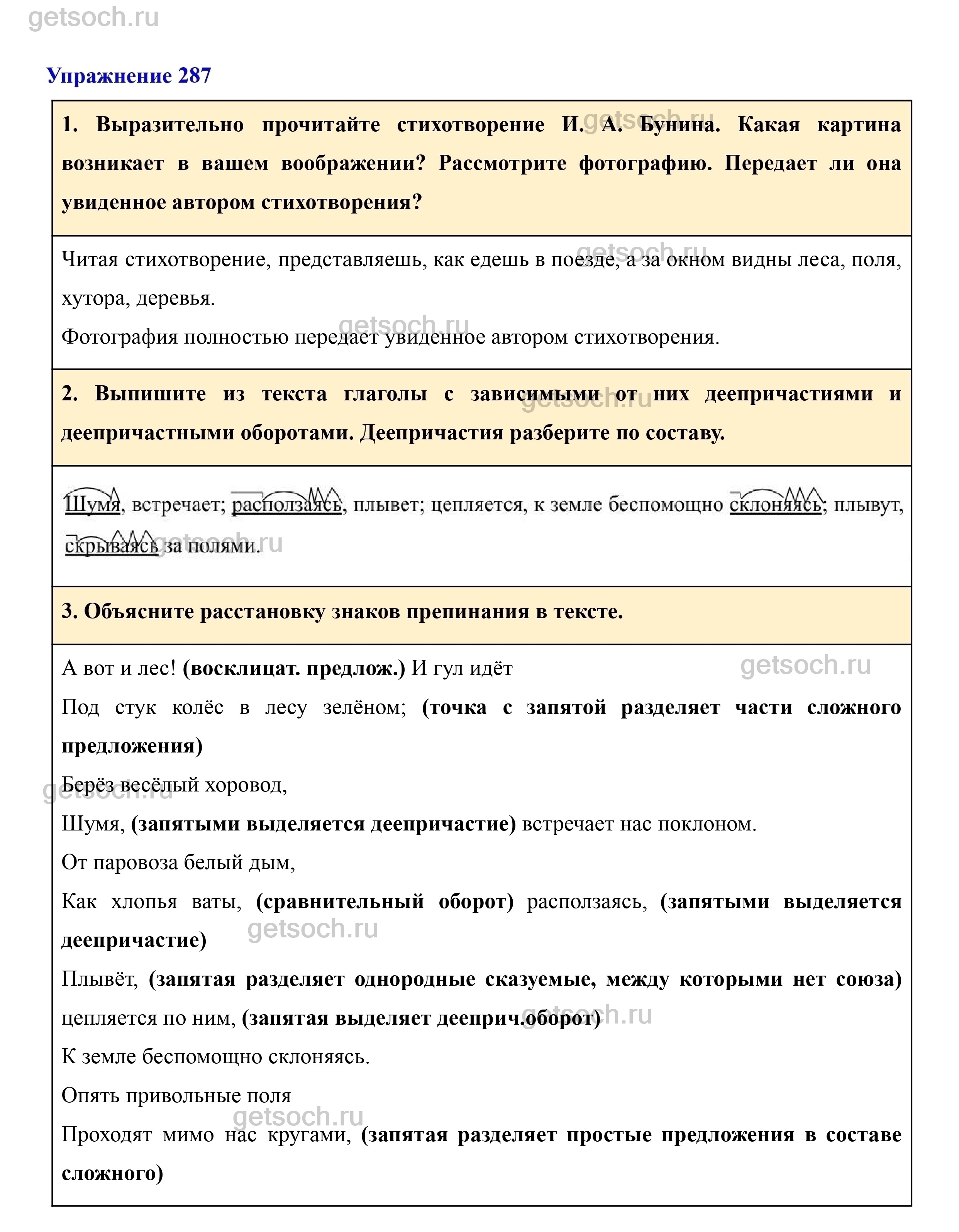 Рассмотрим ответы на Упражнение 287 из учебника по русскому языку для 7 класса Разумовской