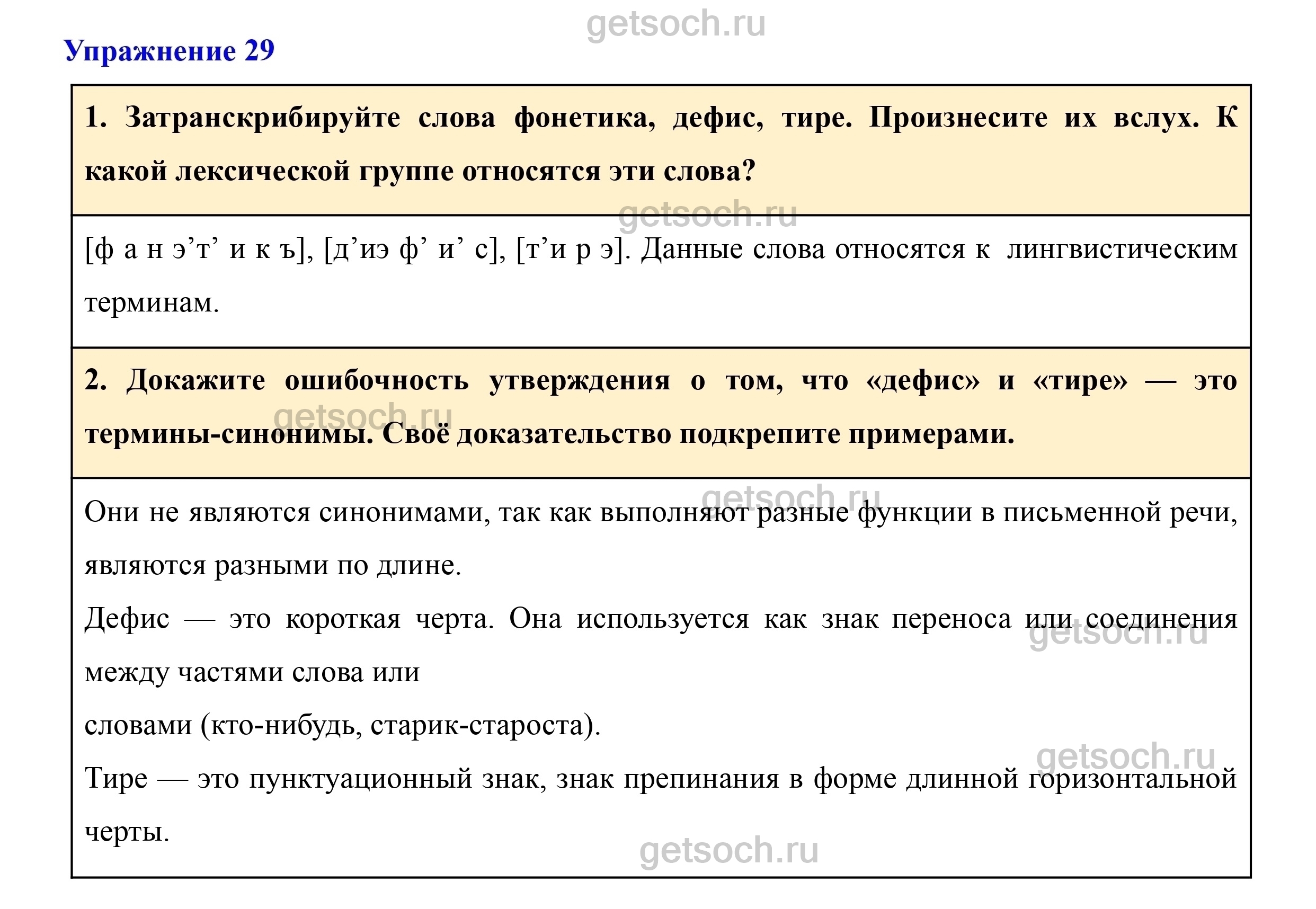 1. Затранскрибируйте слова фонетика, дефис, тире. Произнесите их вслух. К какой лексической группе относятся эти слова?