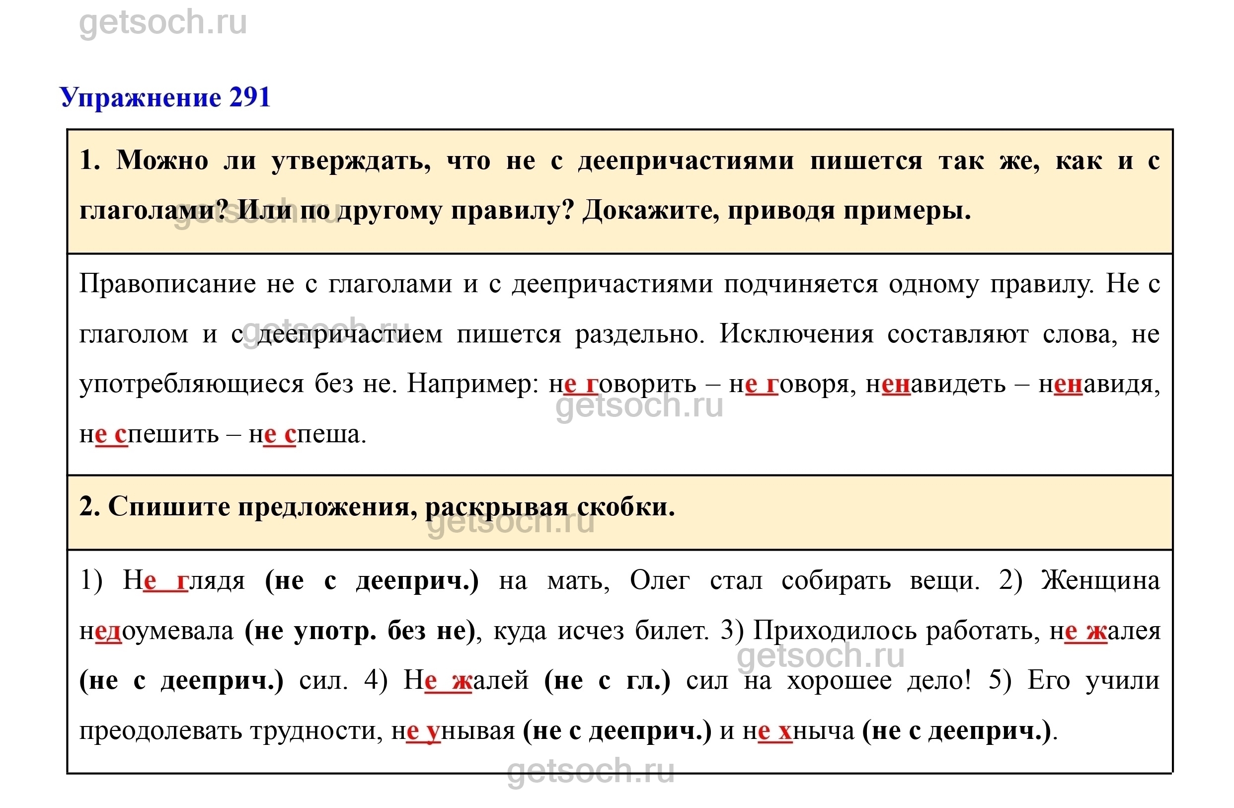 Рассмотрим ответы на Упражнение 291 из учебника по русскому языку для 7 класса Разумовской
