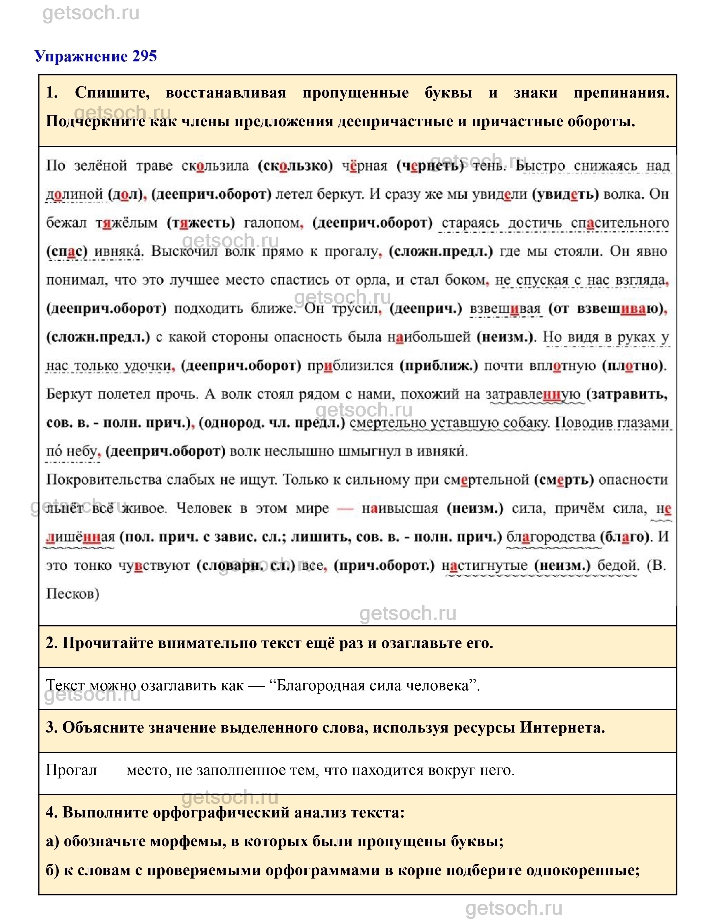Рассмотрим ответы на Упражнение 295 из учебника по русскому языку для 7 класса Разумовской