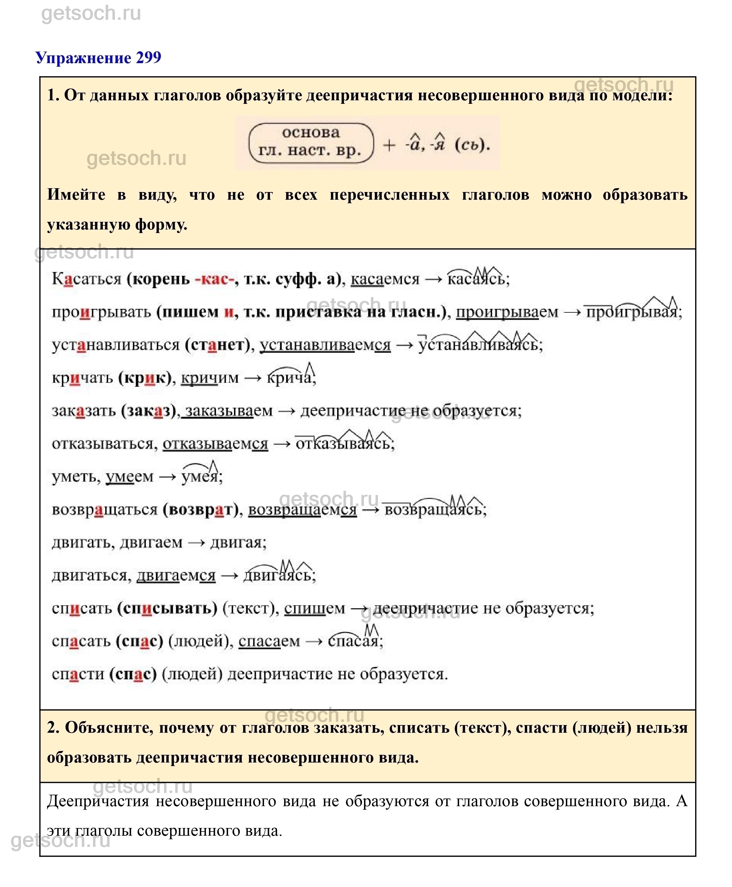 Рассмотрим ответы на Упражнение 299 из учебника по русскому языку для 7 класса Разумовской