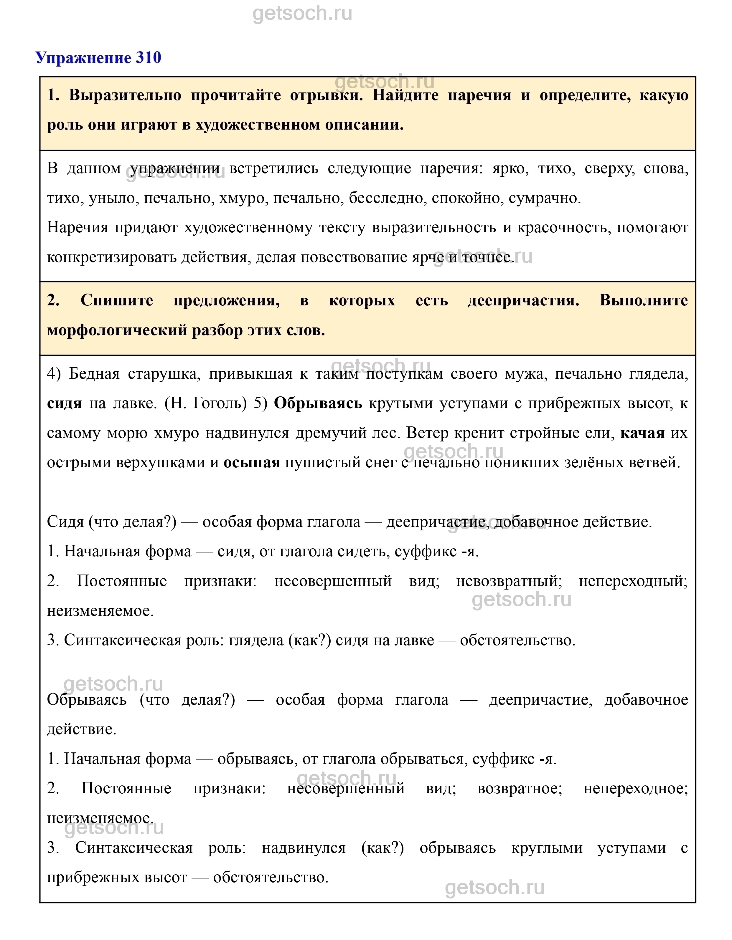 Рассмотрим ответы на Упражнение 310 из учебника по русскому языку для 7 класса Разумовской