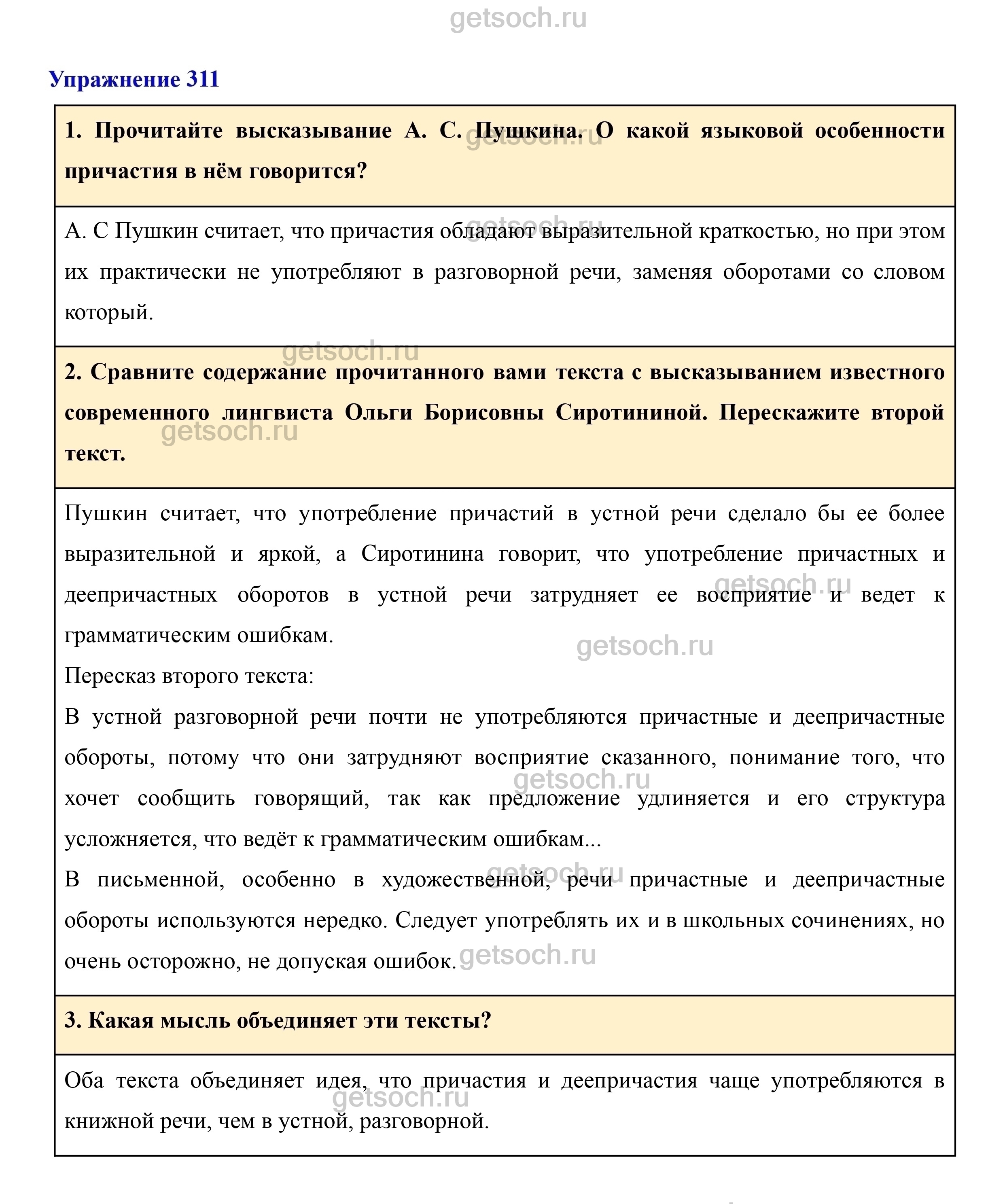 Рассмотрим ответы на Упражнение 311 из учебника по русскому языку для 7 класса Разумовской