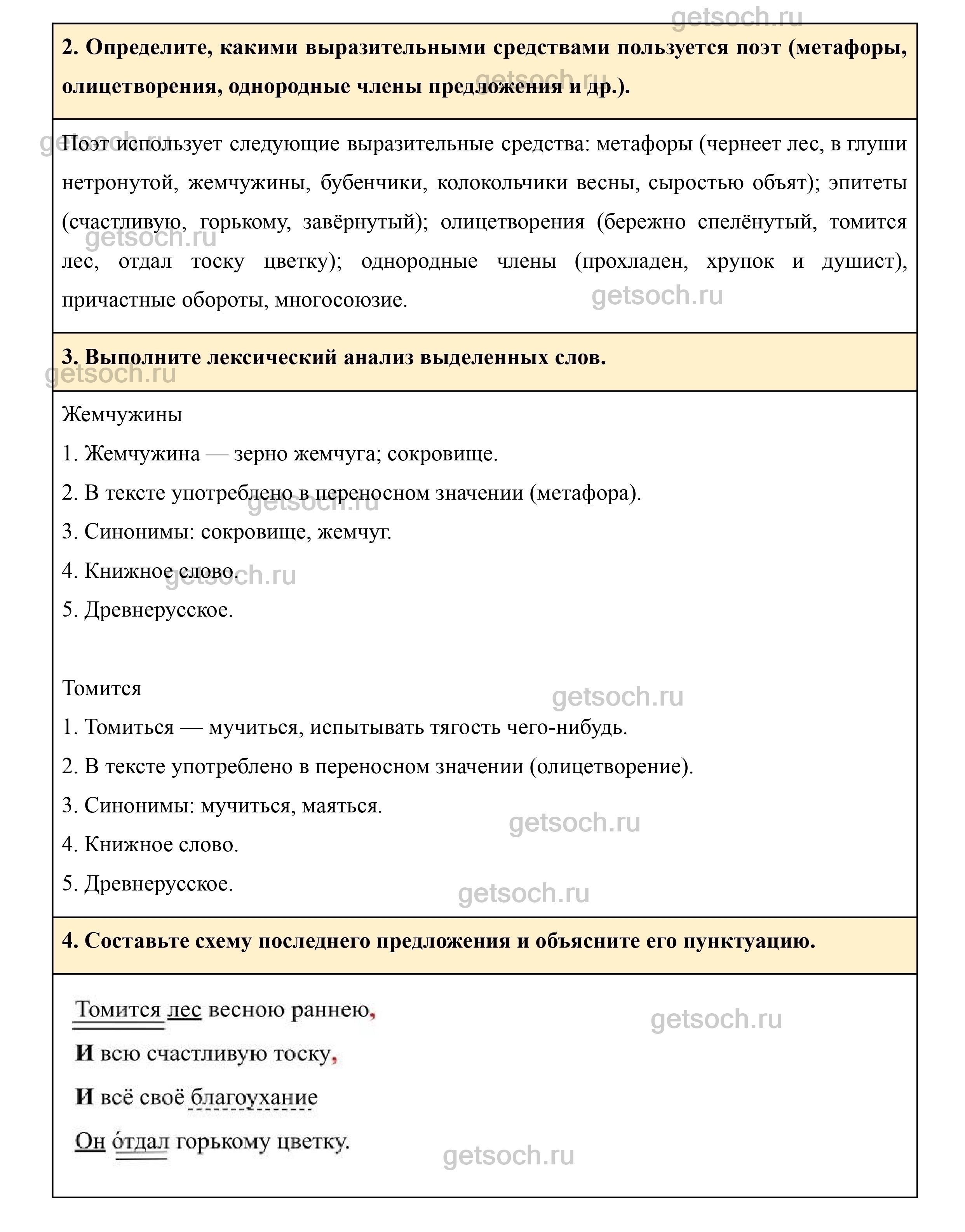 2. Определите, какими выразительными средствами пользуется поэт (метафоры, олицетворения, однородные члены предложения и др.).