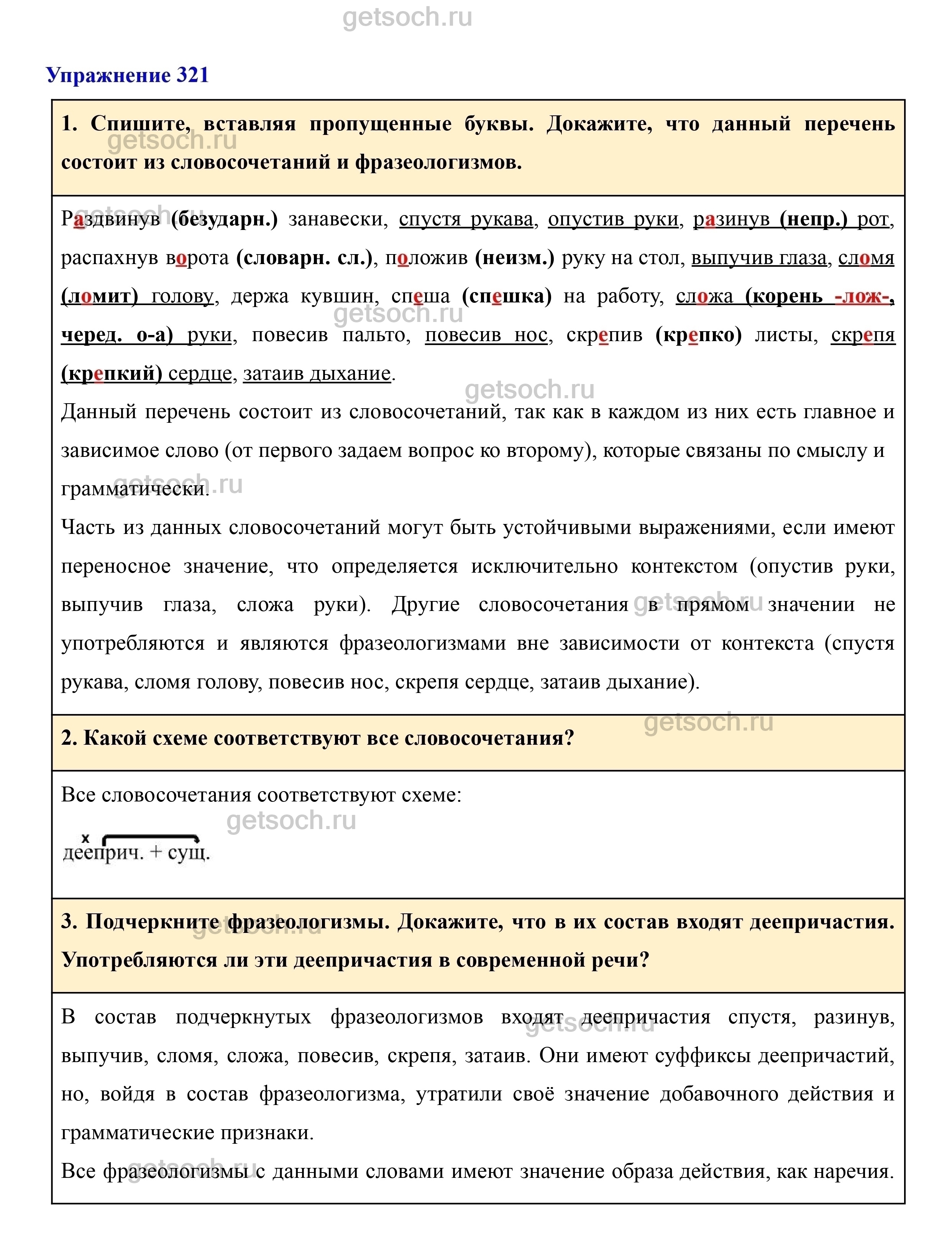 Рассмотрим ответы на Упражнение 321 из учебника по русскому языку для 7 класса Разумовской