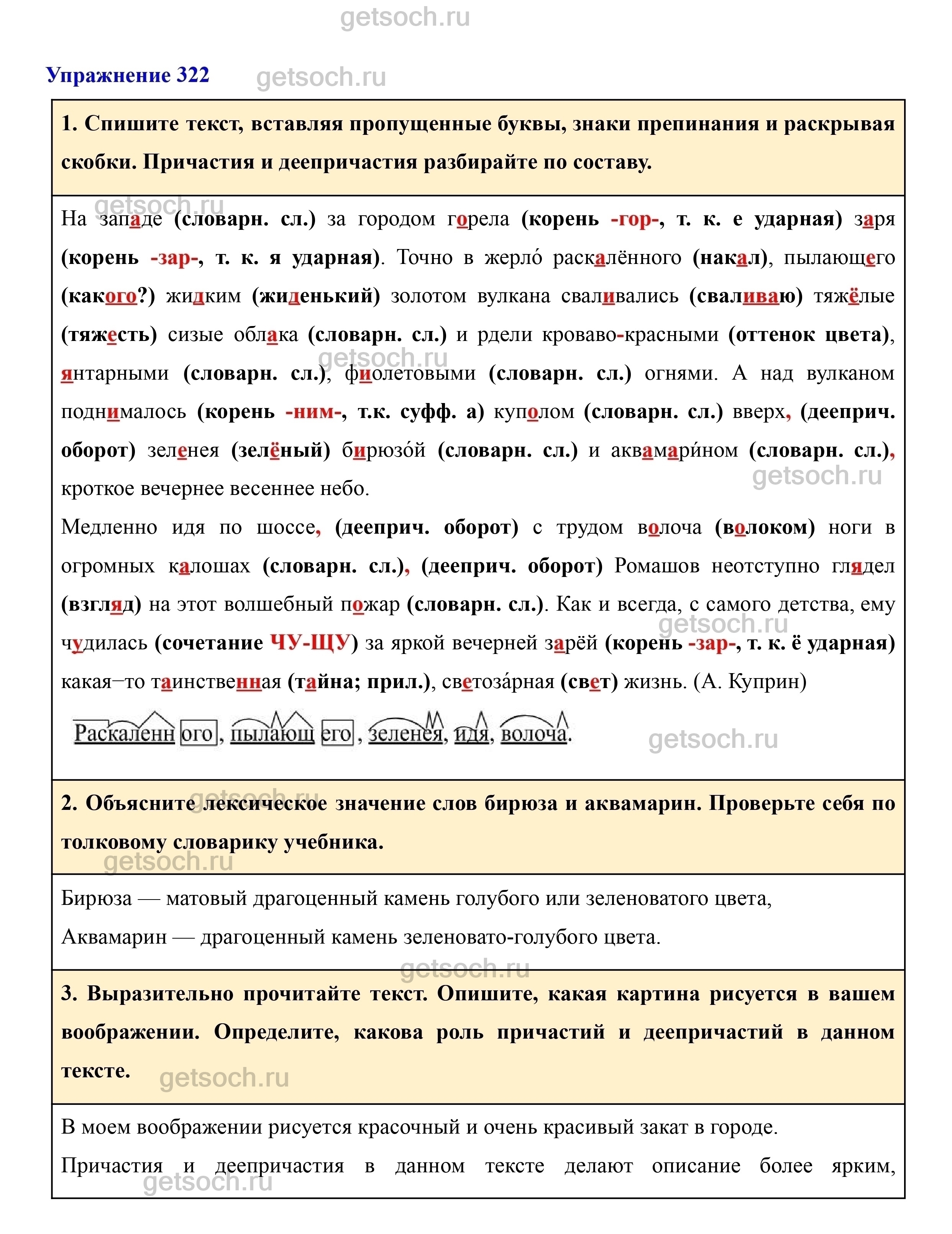 Рассмотрим ответы на Упражнение 322 из учебника по русскому языку для 7 класса Разумовской