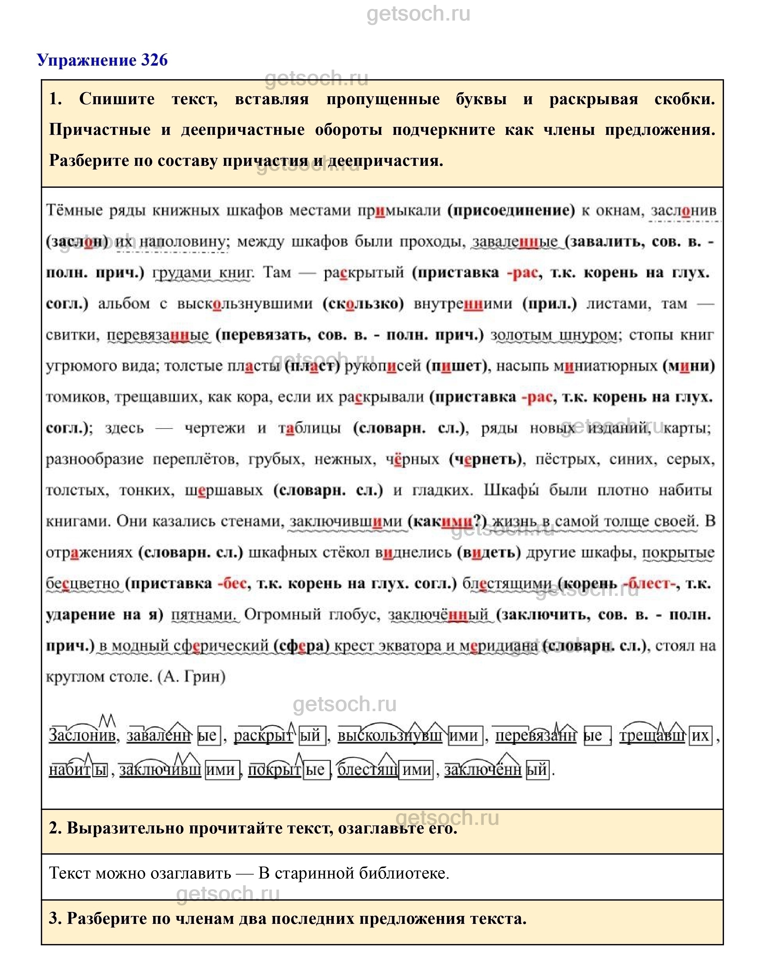 Рассмотрим ответы на Упражнение 326 из учебника по русскому языку для 7 класса Разумовской