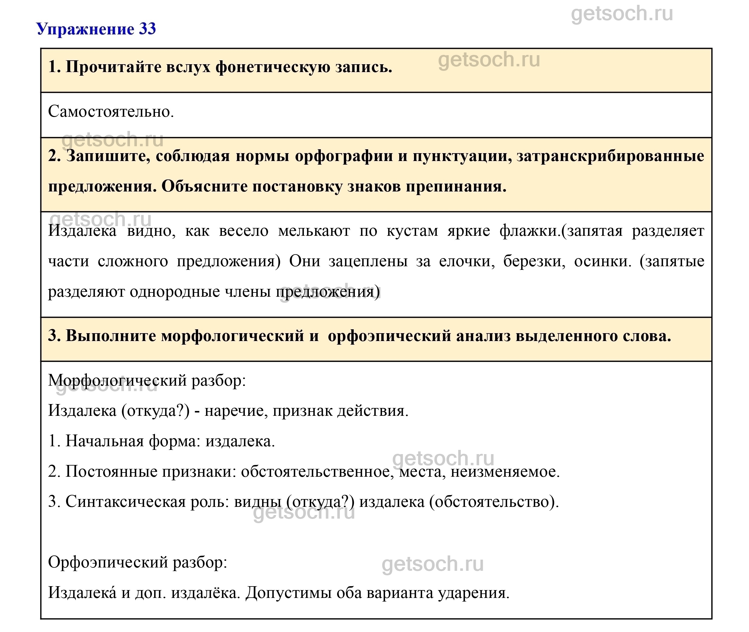 Рассмотрим ответы на Упражнение 33 из учебника по русскому языку для 7 класса Разумовской