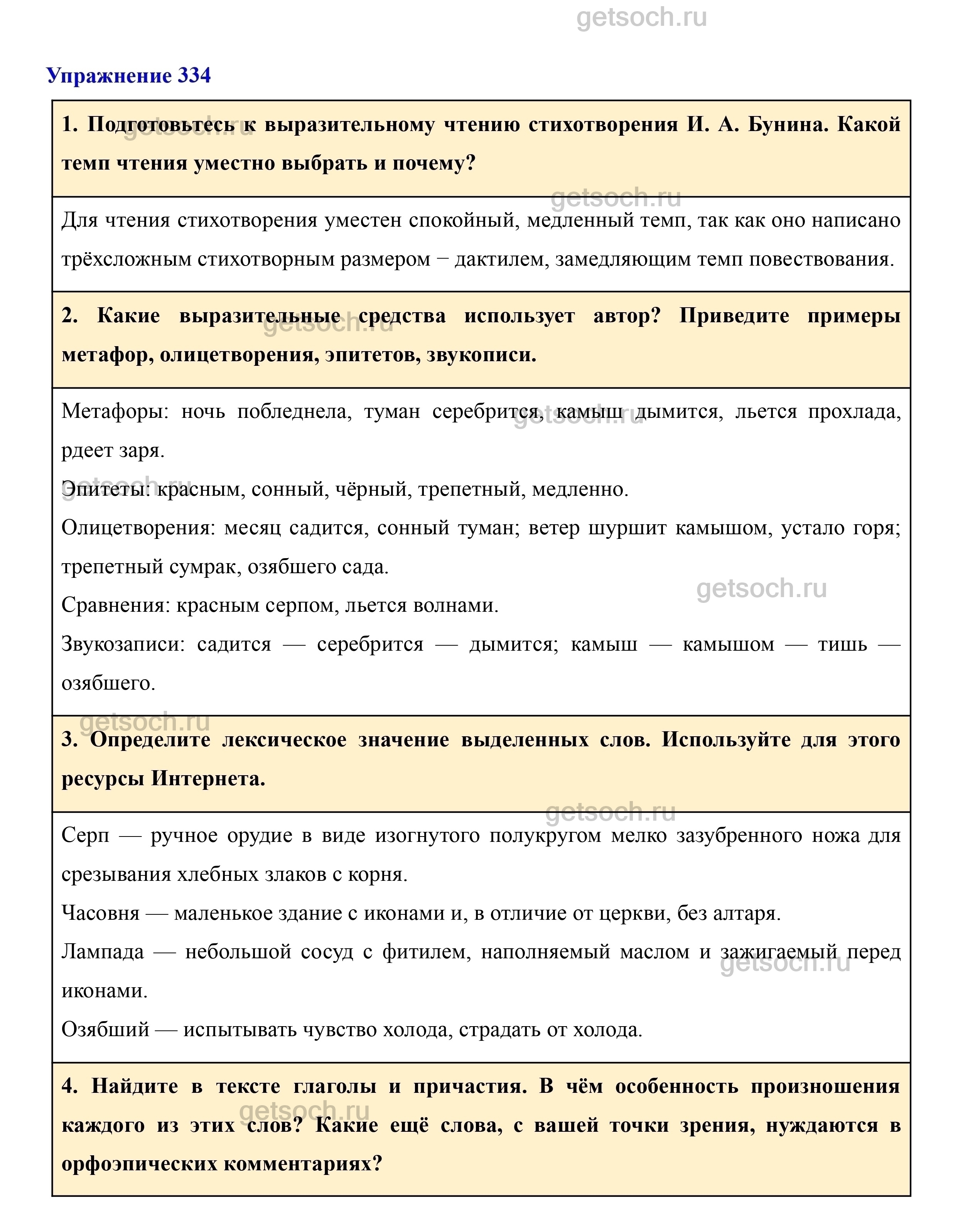Рассмотрим ответы на Упражнение 334 из учебника по русскому языку для 7 класса Разумовской