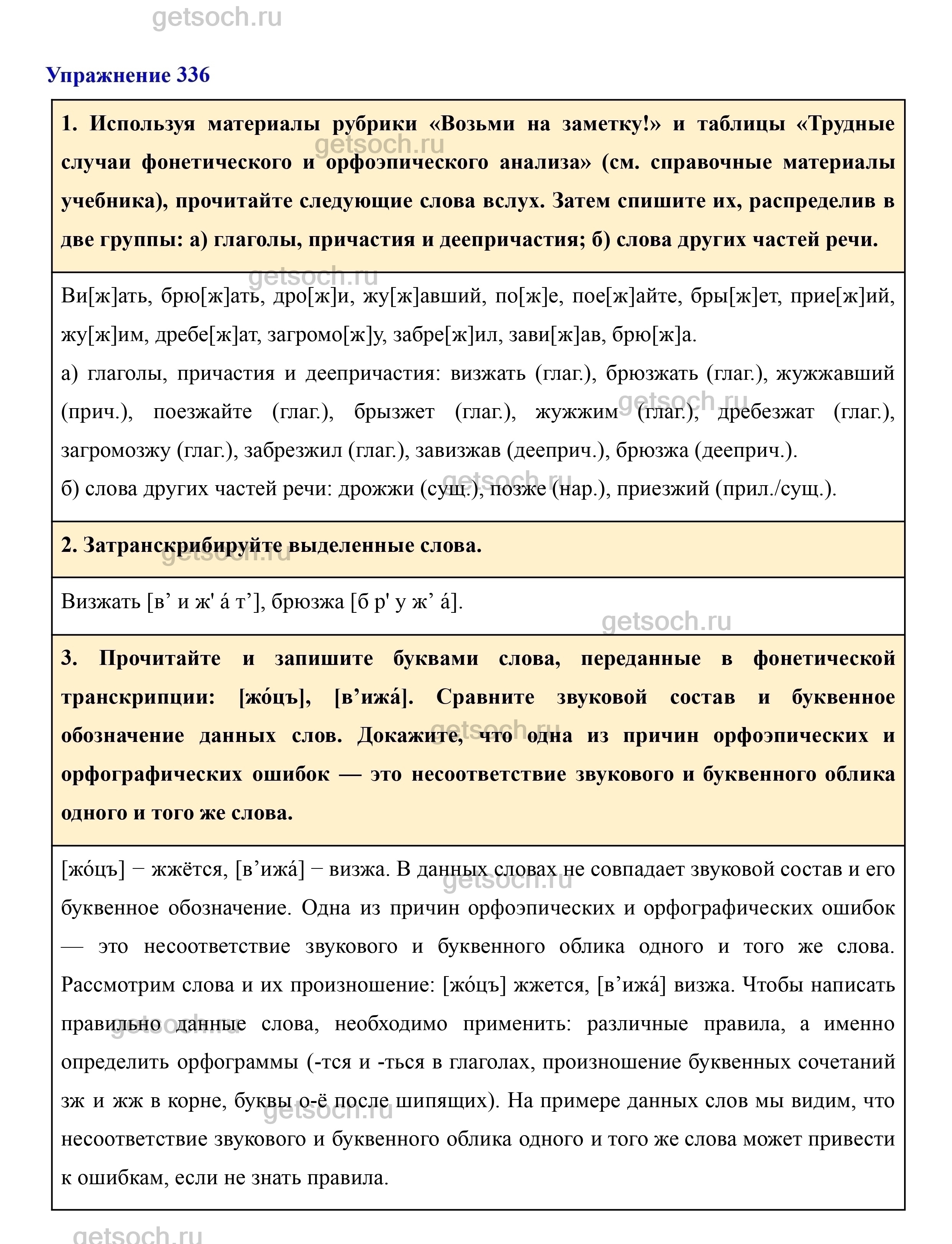 Рассмотрим ответы на Упражнение 336 из учебника по русскому языку для 7 класса Разумовской