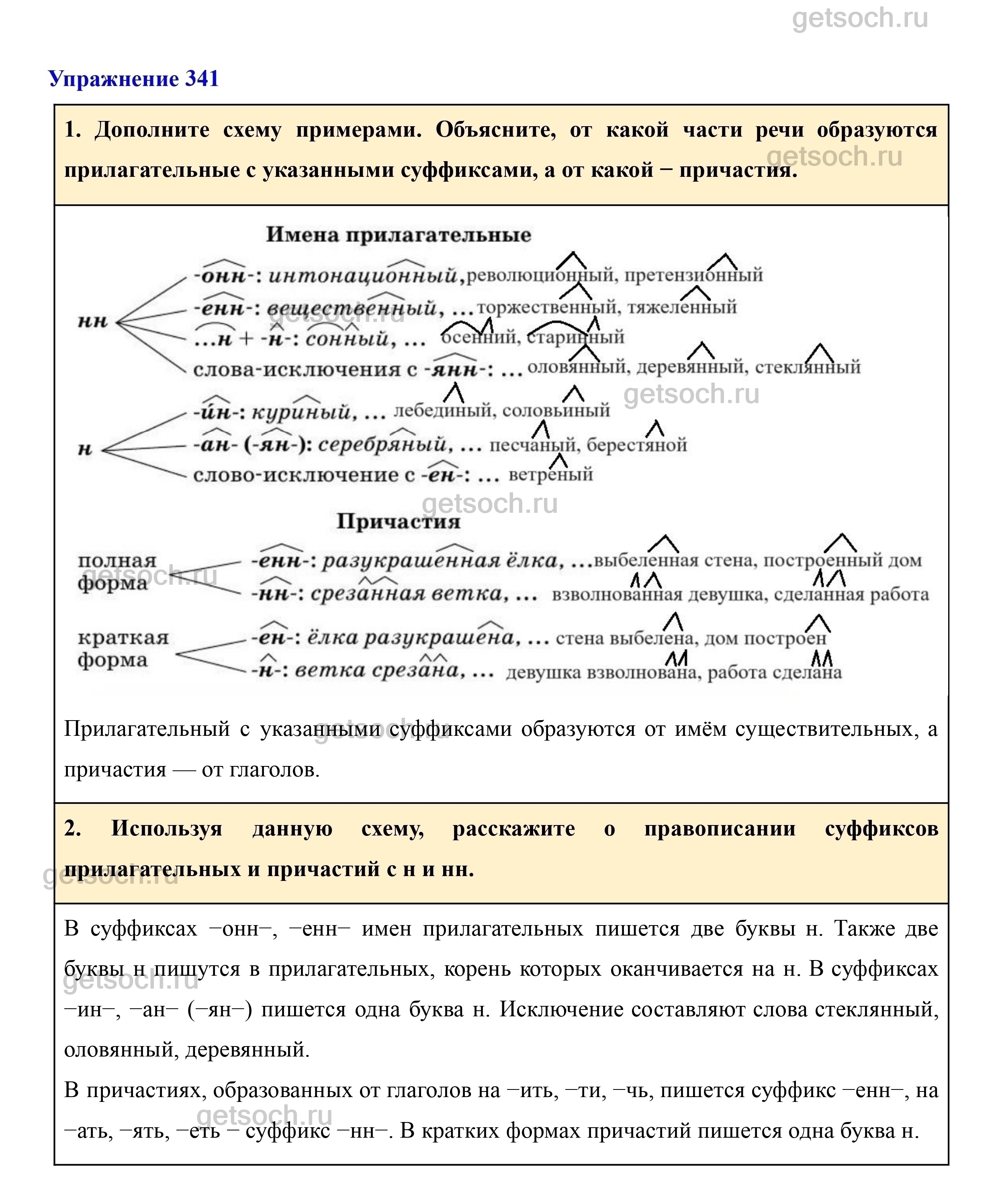 1. Дополните схему примерами. Объясните, от какой части речи образуются прилагательные с указанными суффиксами, а от какой − причастия.