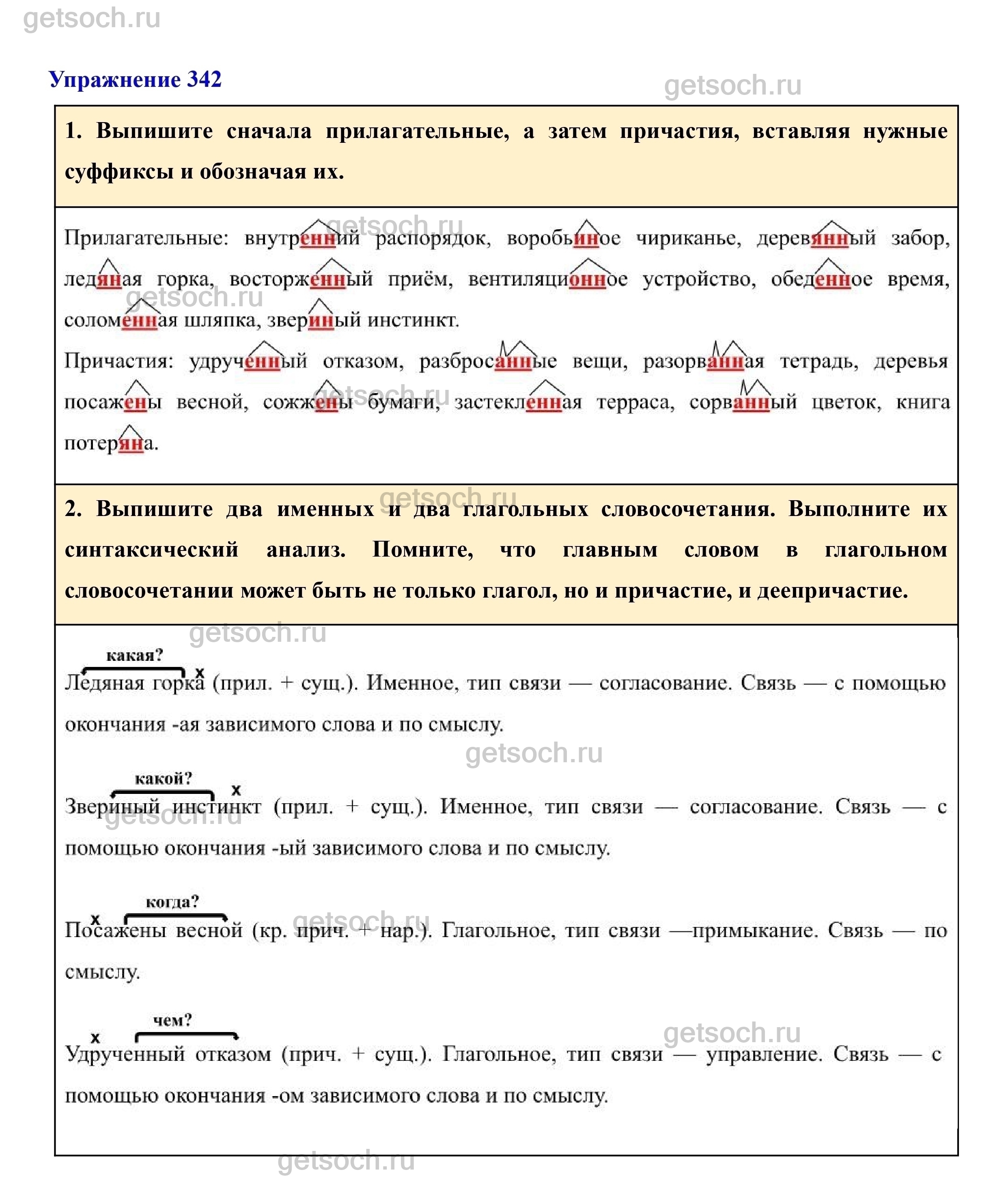 Рассмотрим ответы на Упражнение 342 из учебника по русскому языку для 7 класса Разумовской