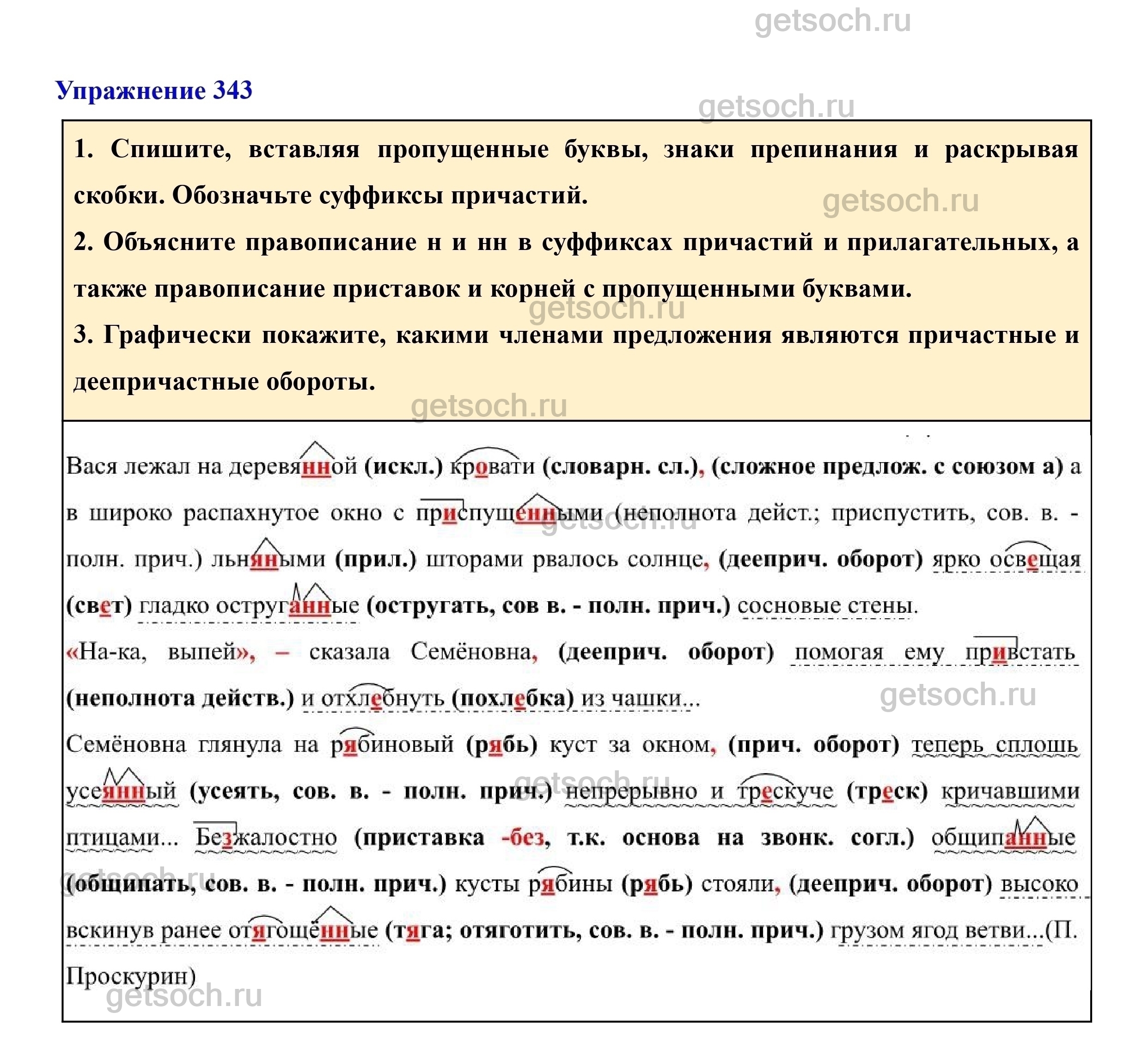 Рассмотрим ответы на Упражнение 343 из учебника по русскому языку для 7 класса Разумовской
