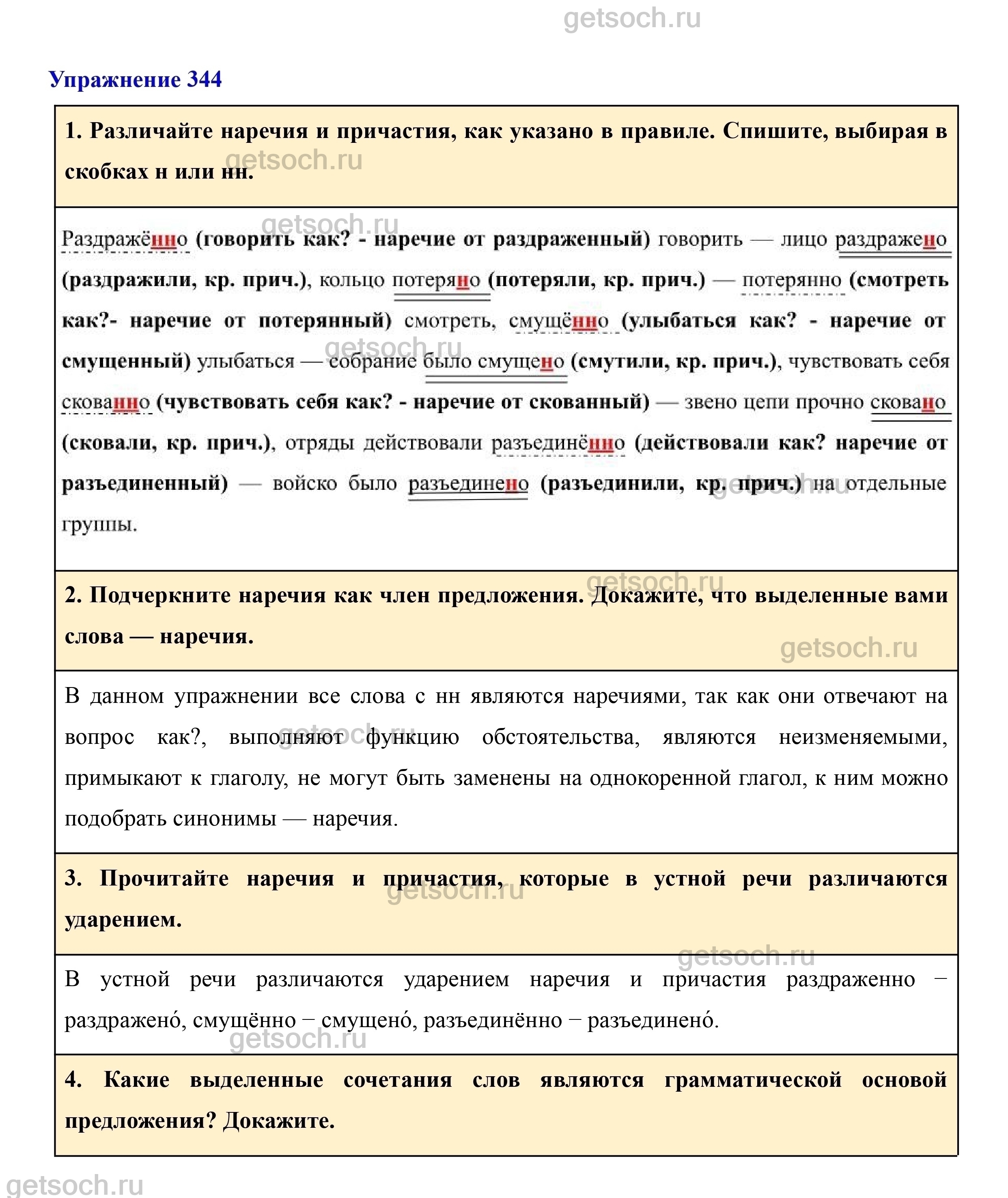 Рассмотрим ответы на Упражнение 344 из учебника по русскому языку для 7 класса Разумовской