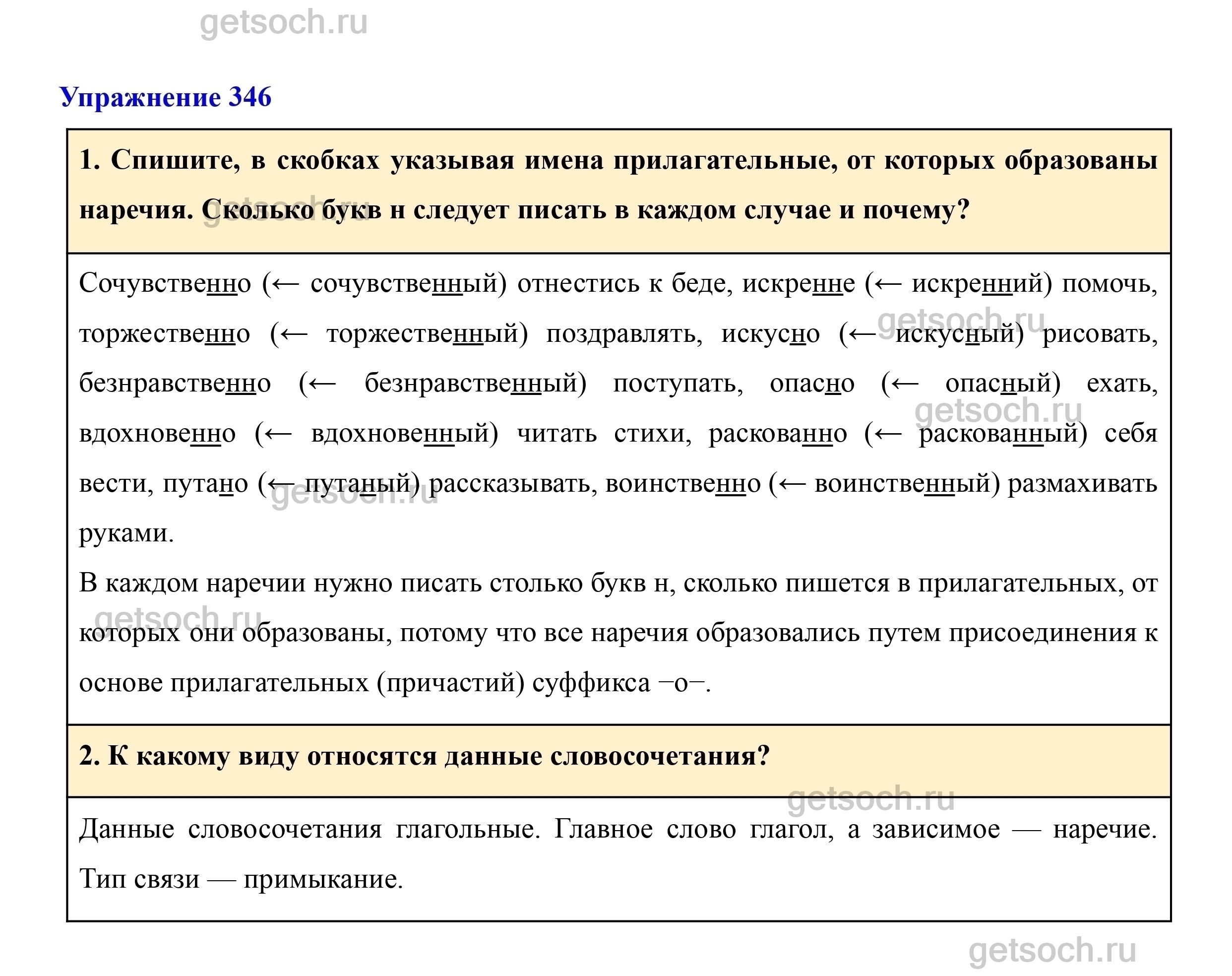 Рассмотрим ответы на Упражнение 346 из учебника по русскому языку для 7 класса Разумовской