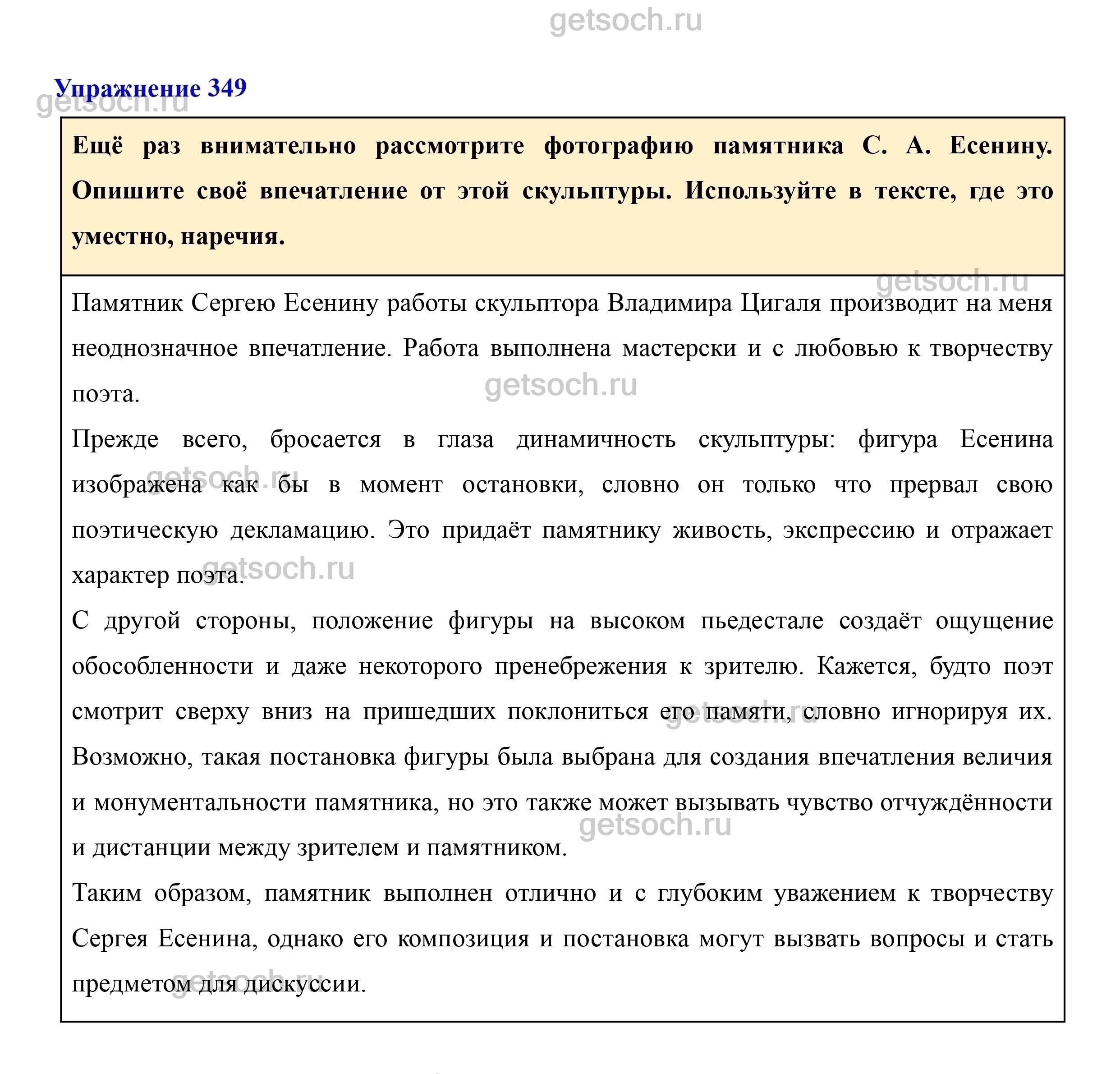 Ещё раз внимательно рассмотрите фотографию памятника С. А. Есенину. Опишите своё впечатление от этой скульптуры. Используйте в тексте, где это уместно, наречия.