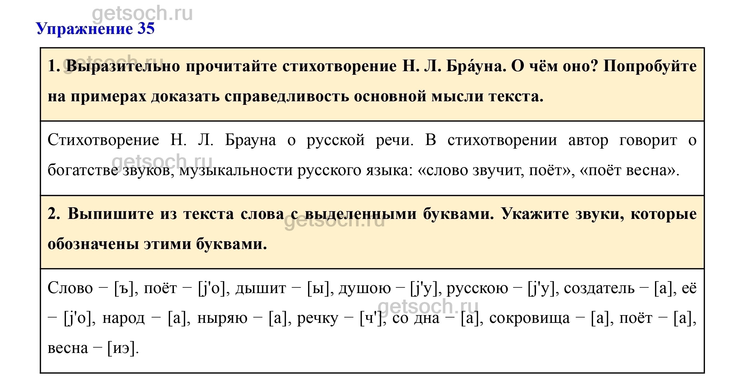 Рассмотрим ответы на Упражнение 35 из учебника по русскому языку для 7 класса Разумовской