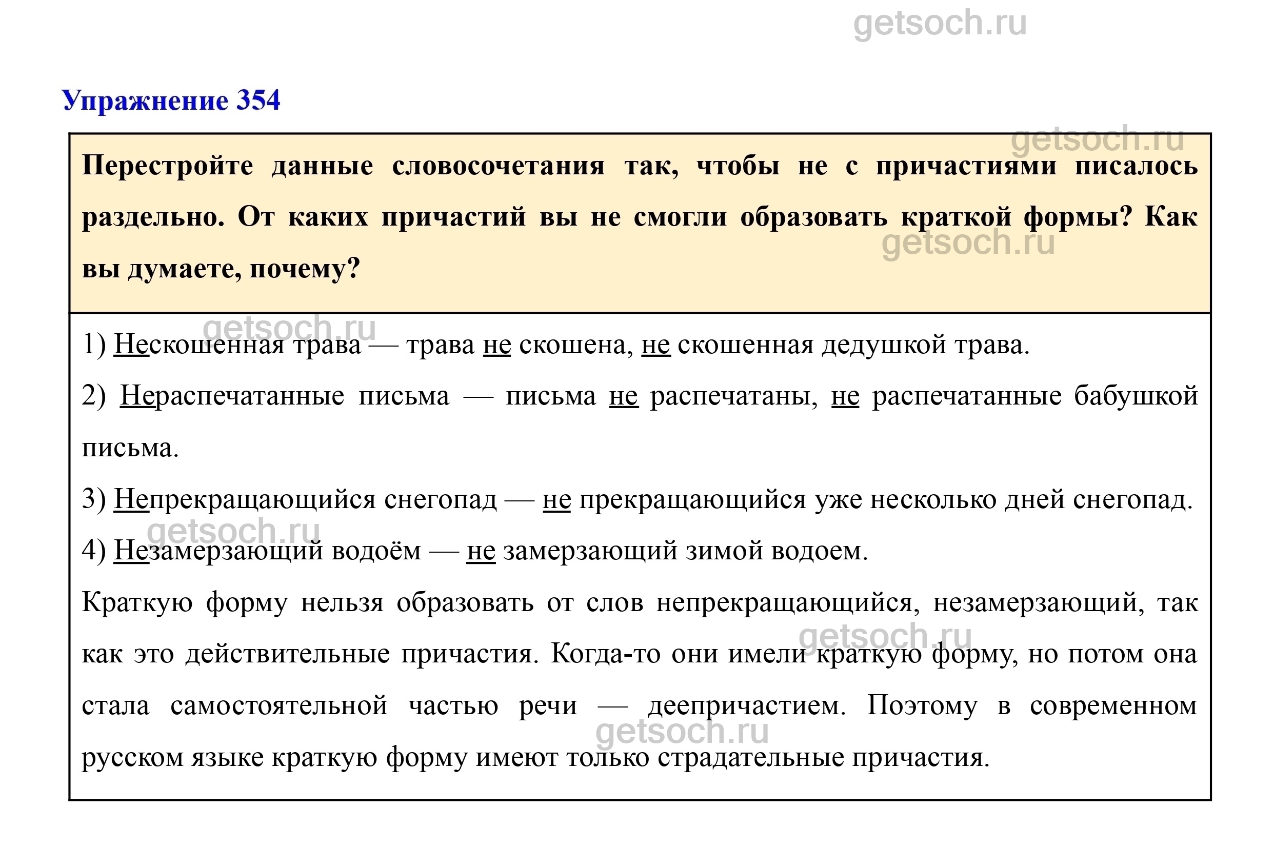Рассмотрим ответы на Упражнение 354 из учебника по русскому языку для 7 класса Разумовской