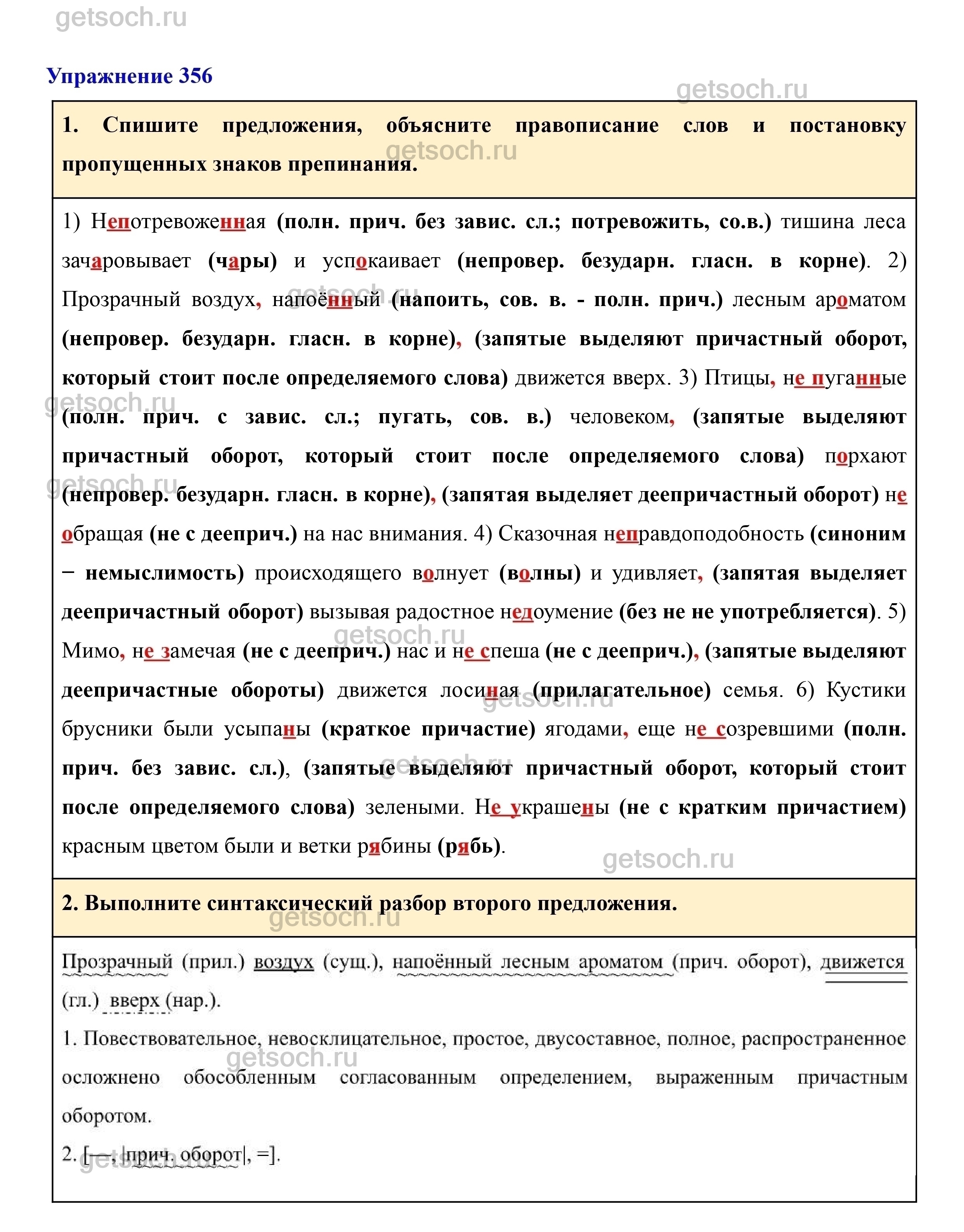Рассмотрим ответы на Упражнение 356 из учебника по русскому языку для 7 класса Разумовской