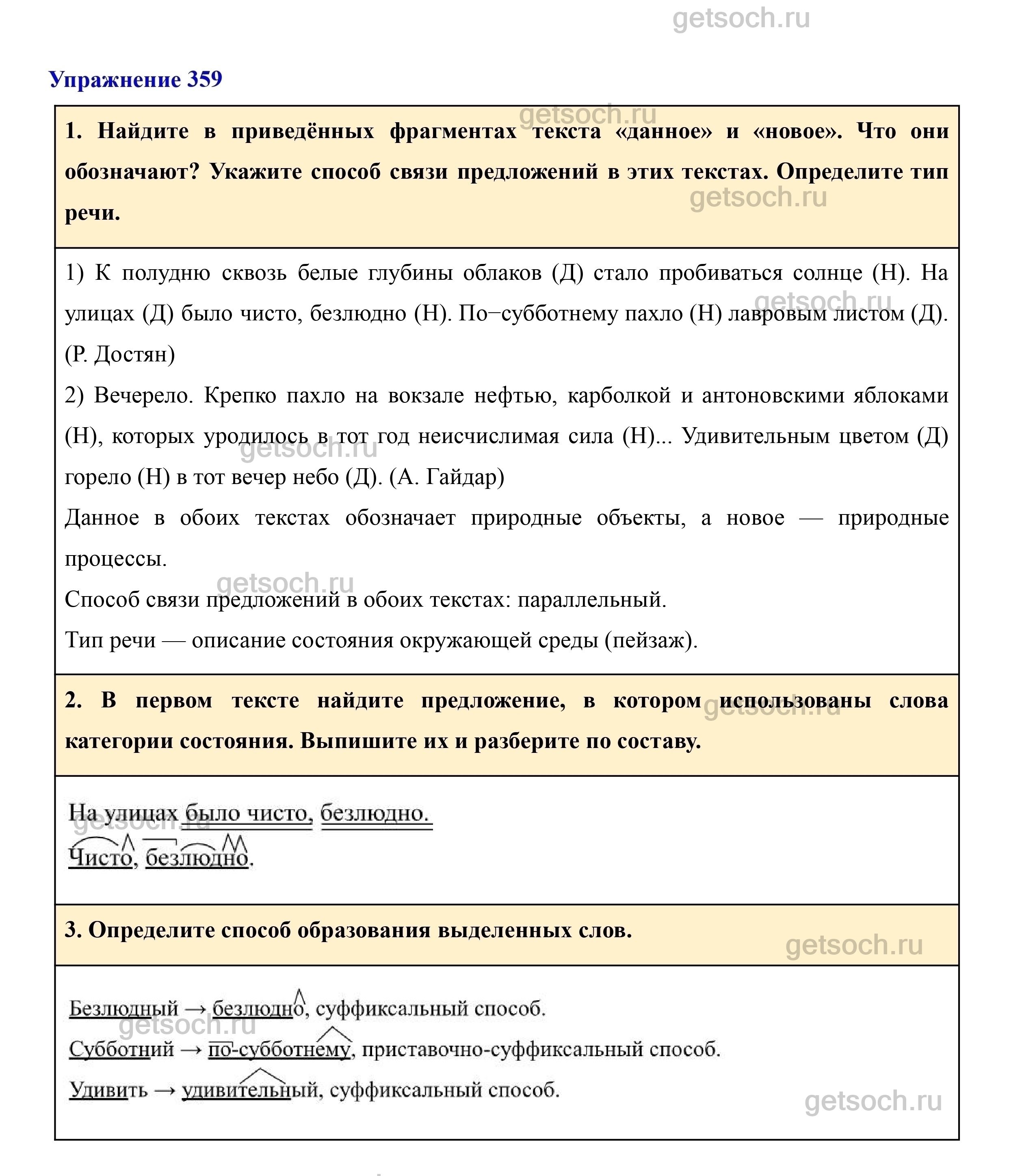 Рассмотрим ответы на Упражнение 359 из учебника по русскому языку для 7 класса Разумовской