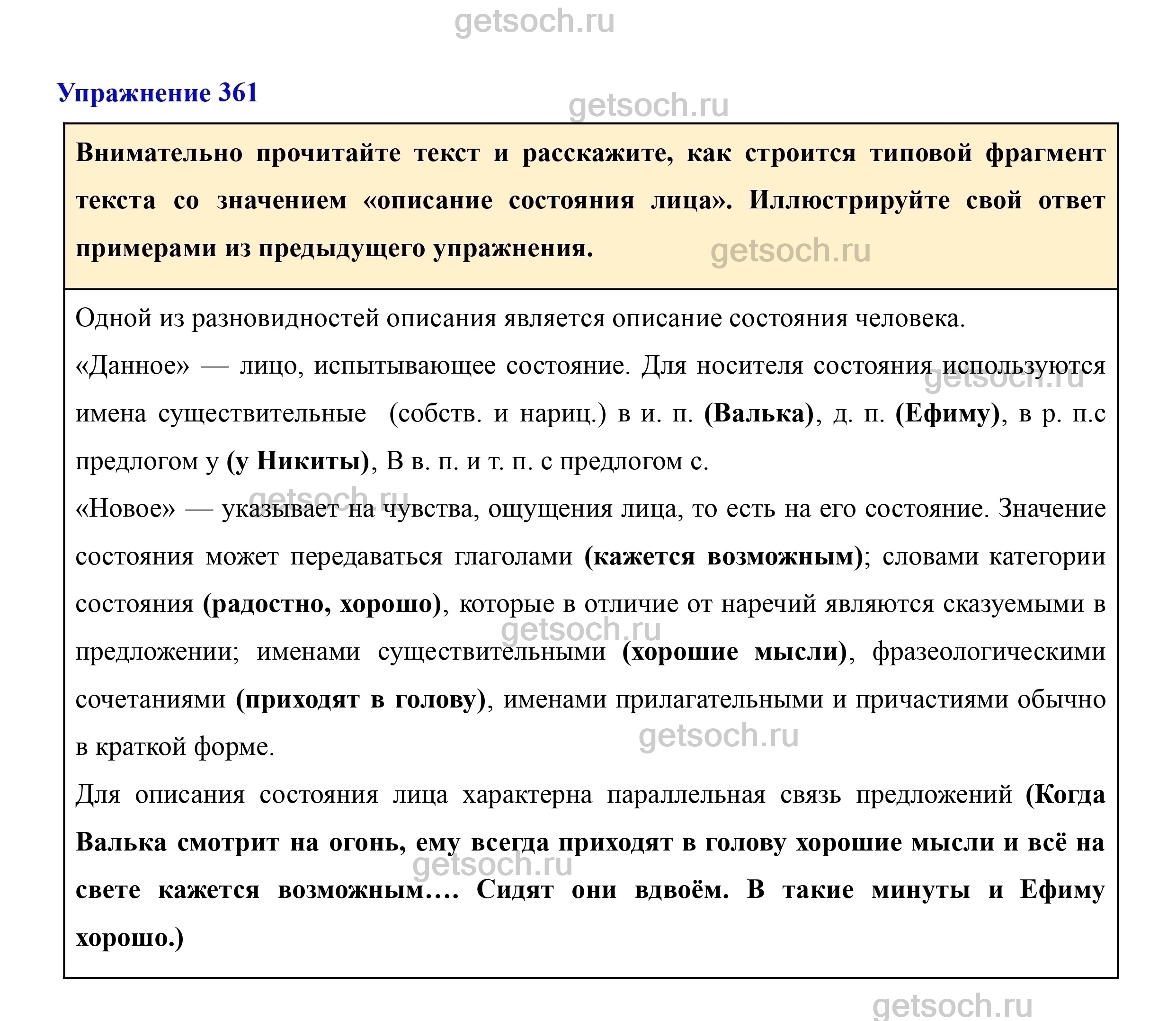 Рассмотрим ответы на Упражнение 361 из учебника по русскому языку для 7 класса Разумовской