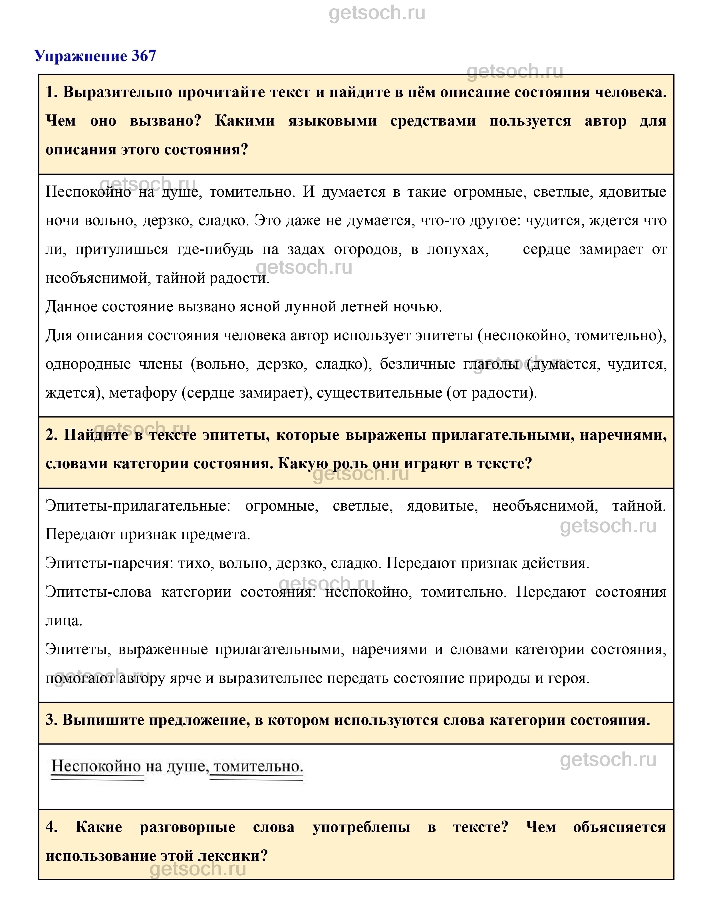 Рассмотрим ответы на Упражнение 367 из учебника по русскому языку для 7 класса Разумовской