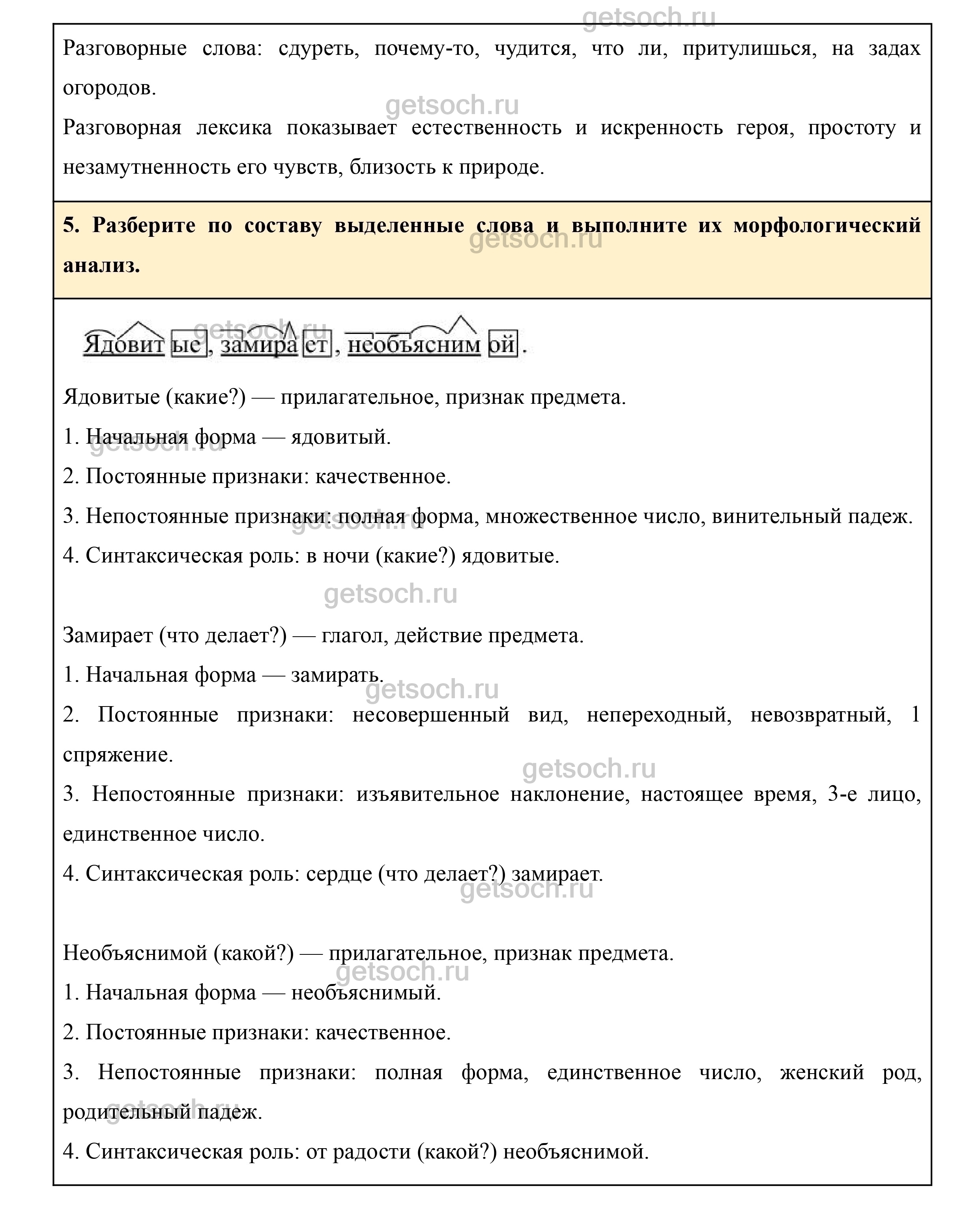 5. Разберите по составу выделенные слова и выполните их морфологический анализ.