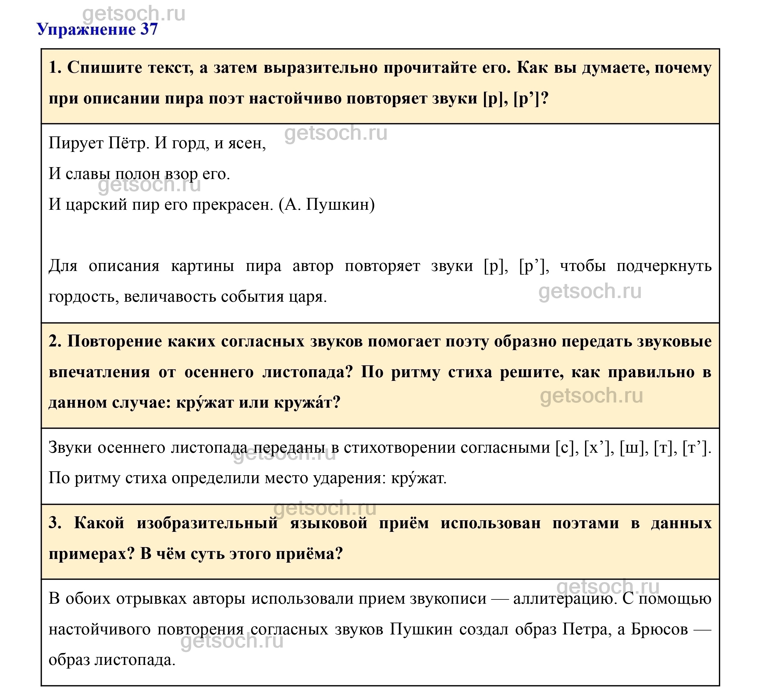 Рассмотрим ответы на Упражнение 37 из учебника по русскому языку для 7 класса Разумовской