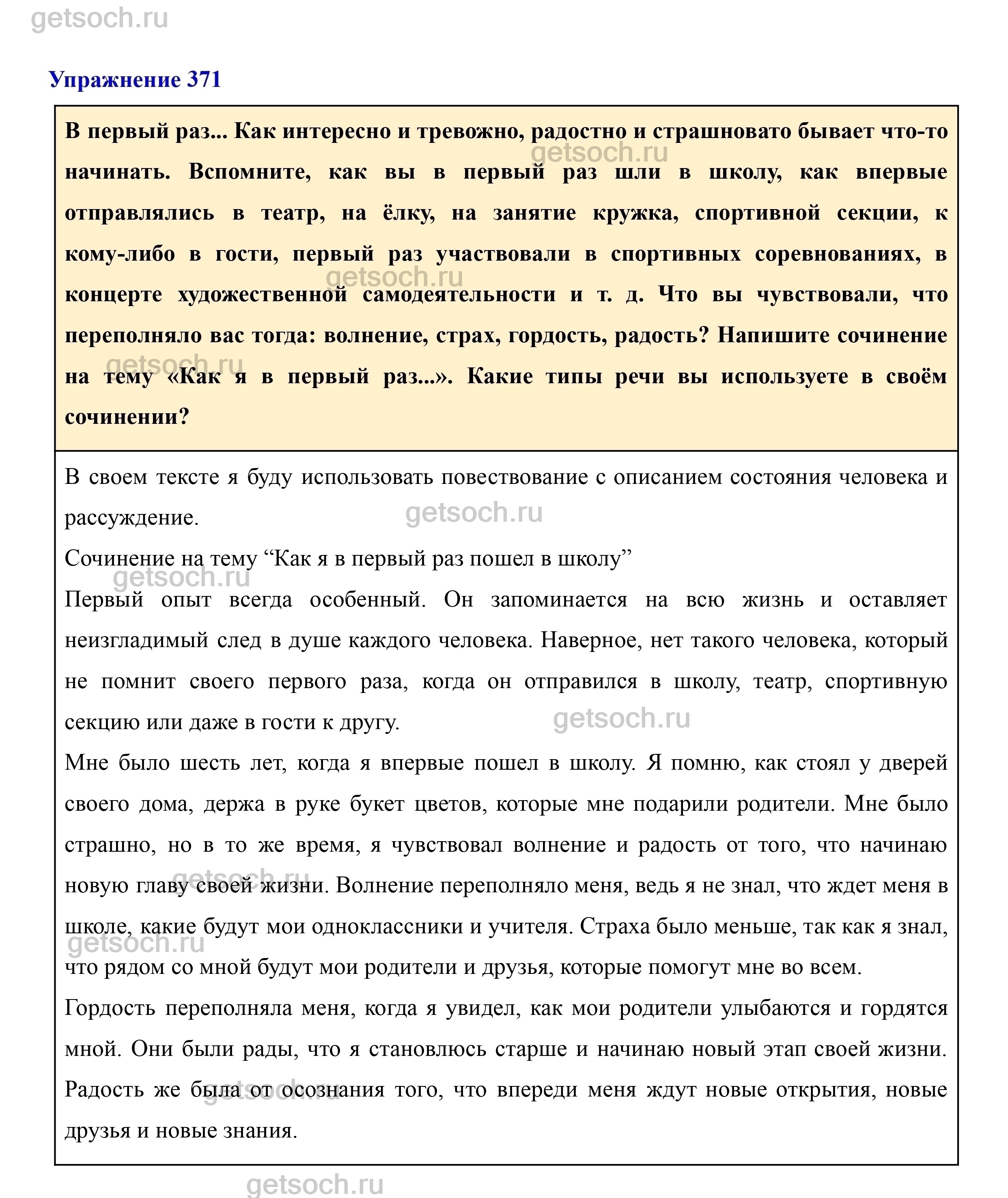 Рассмотрим ответы на Упражнение 371 из учебника по русскому языку для 7 класса Разумовской