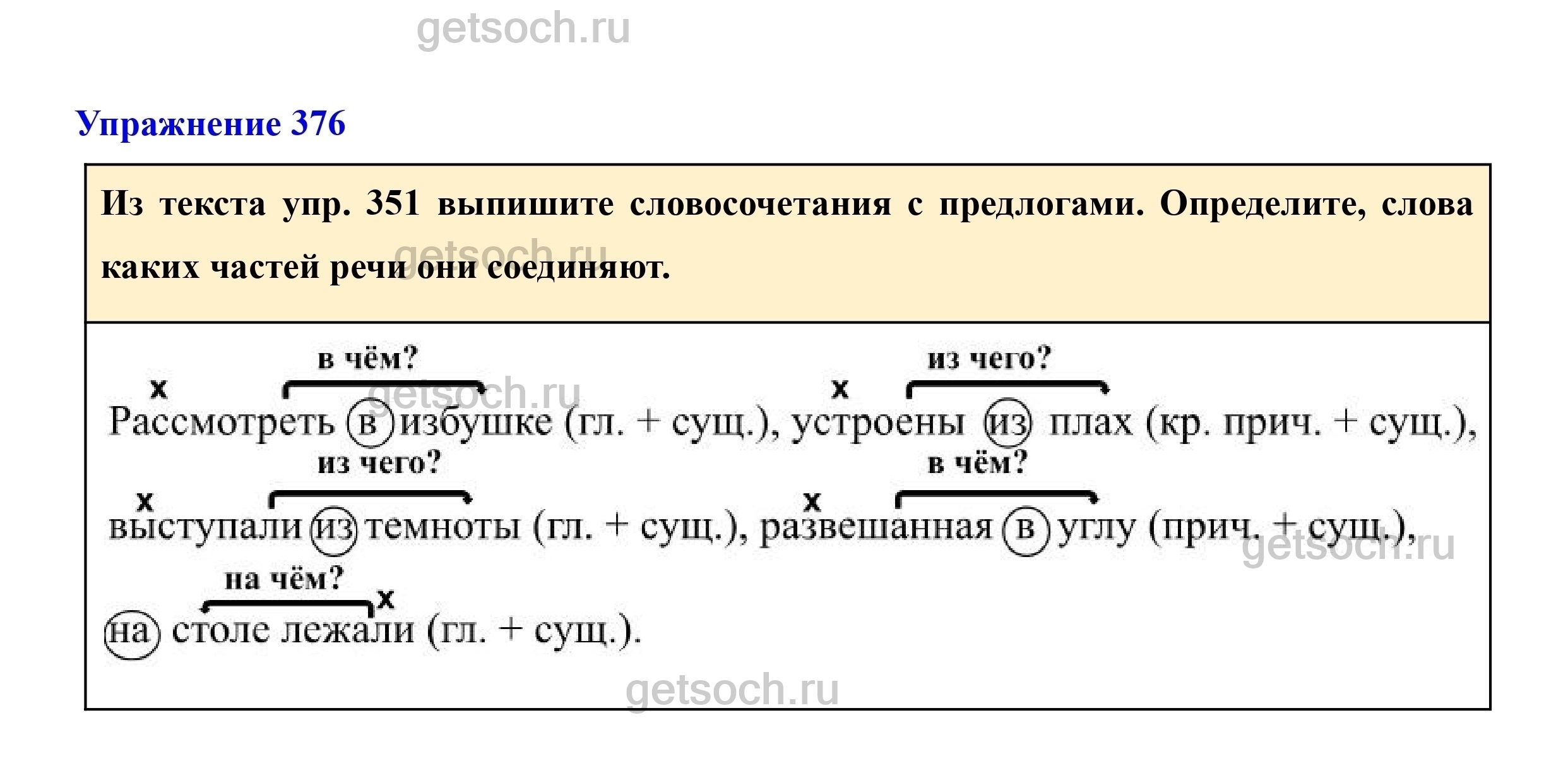 Из текста упр. 351 выпишите словосочетания с предлогами. Определите, слова каких частей речи они соединяют.