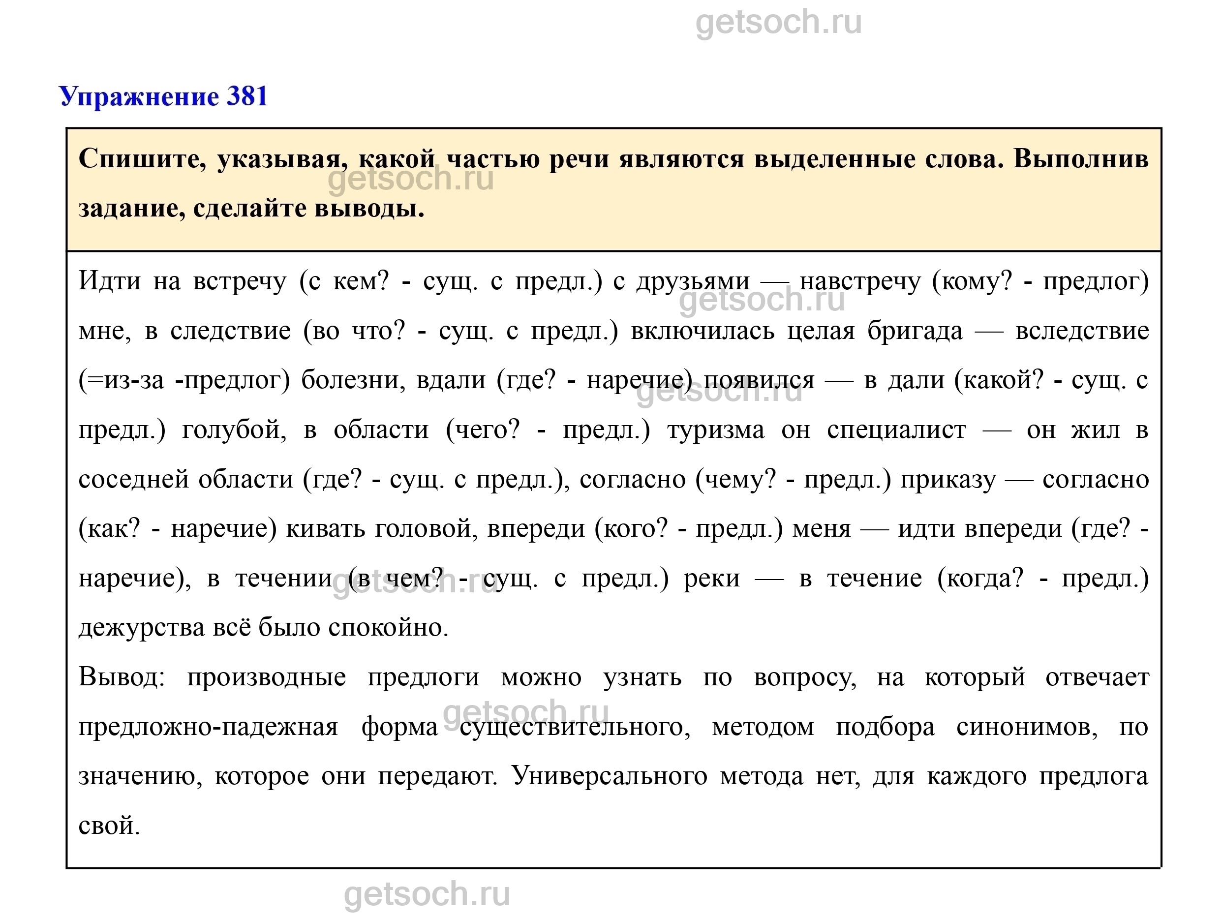 Спишите, указывая, какой частью речи являются выделенные слова. Выполнив задание, сделайте выводы.