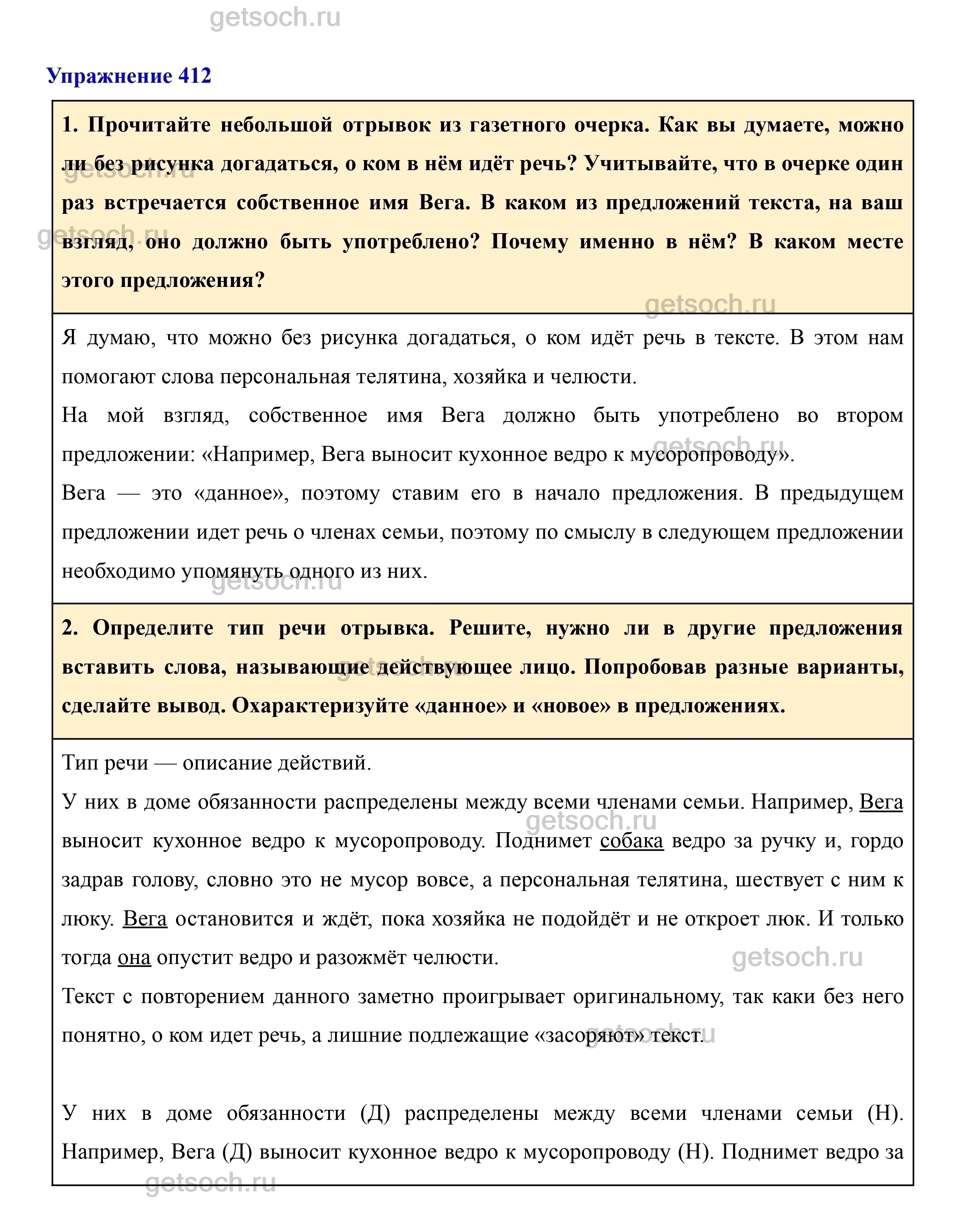Рассмотрим ответы на Упражнение 412 из учебника по русскому языку для 7 класса Разумовской