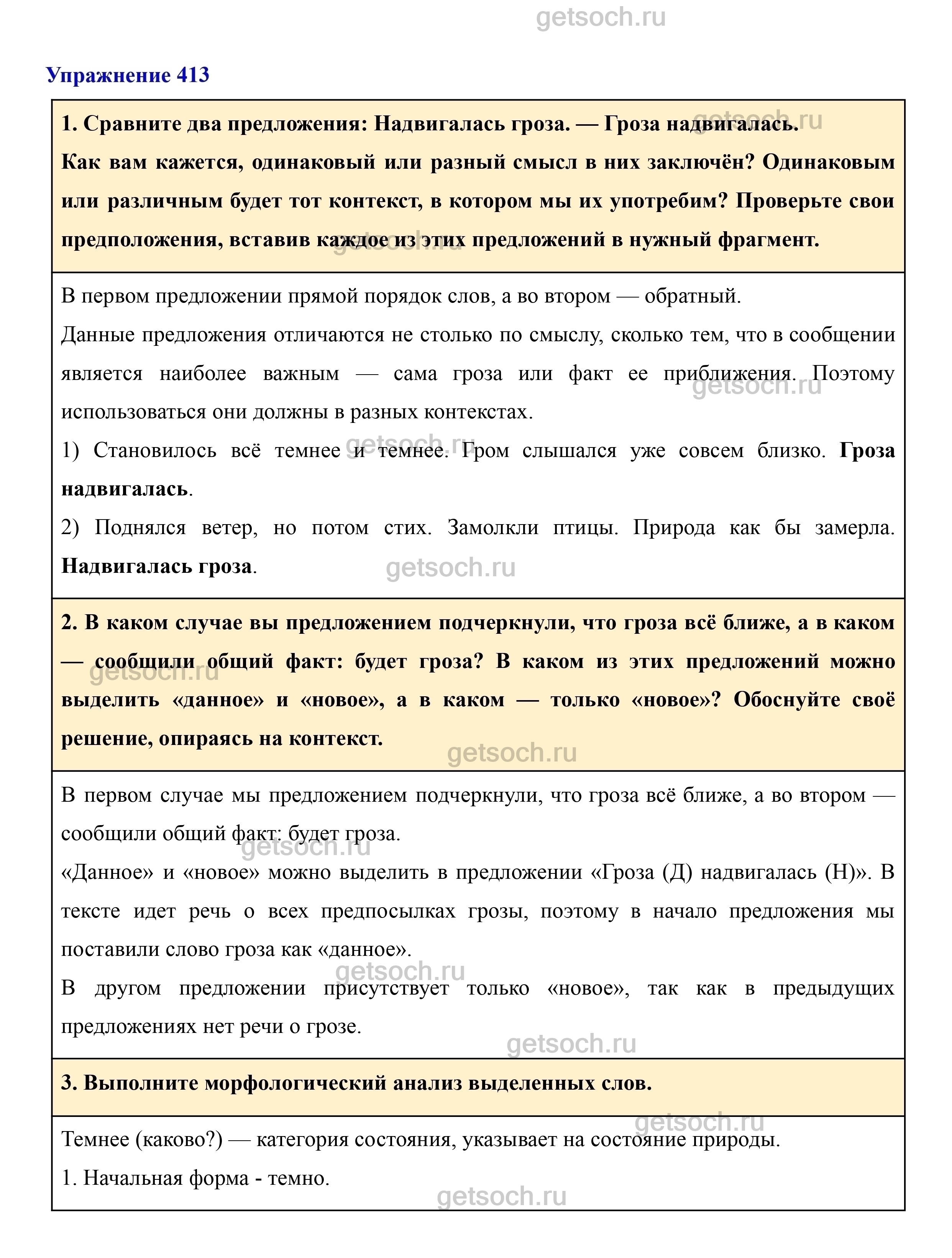 Рассмотрим ответы на Упражнение 413 из учебника по русскому языку для 7 класса Разумовской