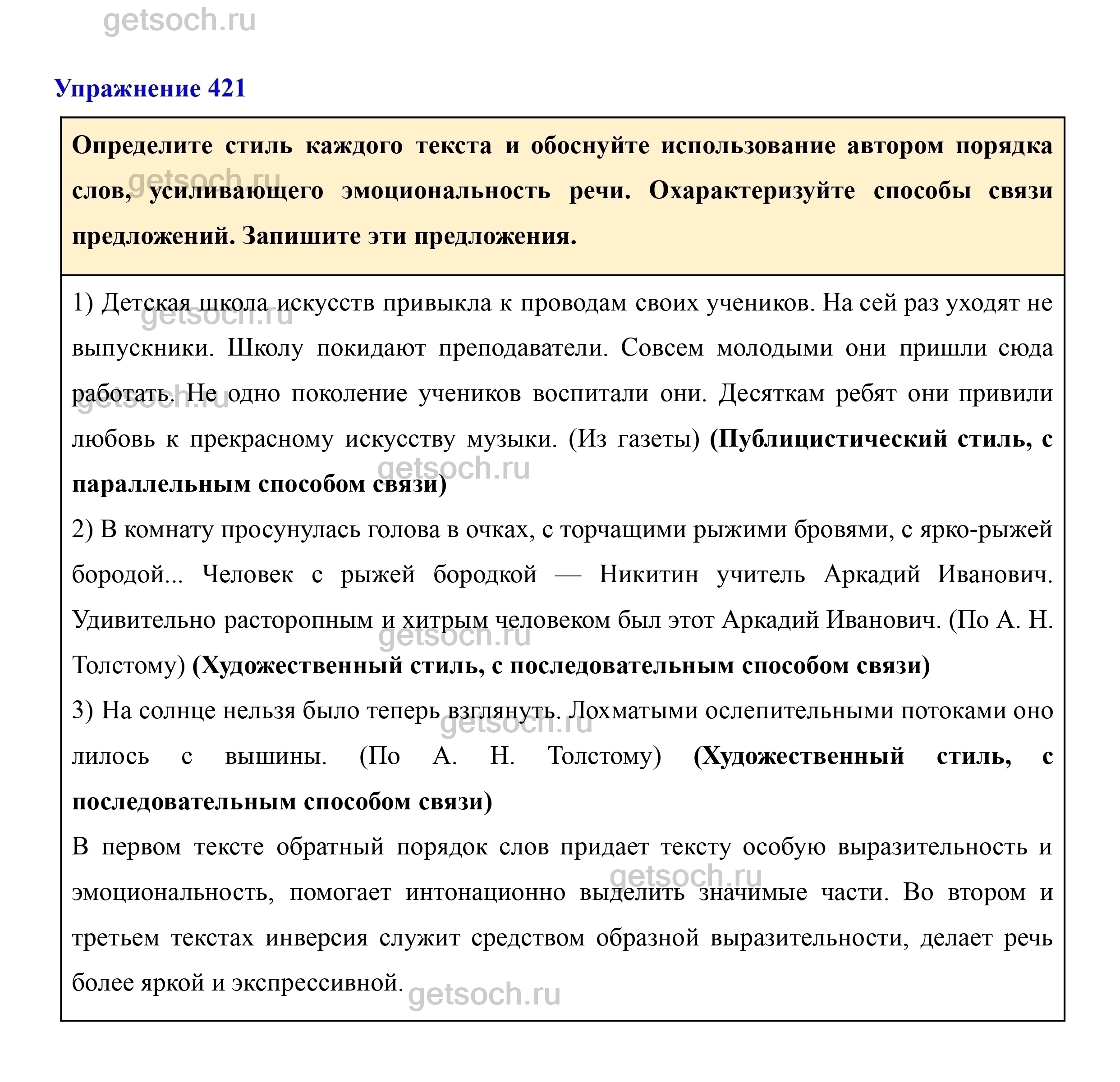 Рассмотрим ответы на Упражнение 421 из учебника по русскому языку для 7 класса Разумовской