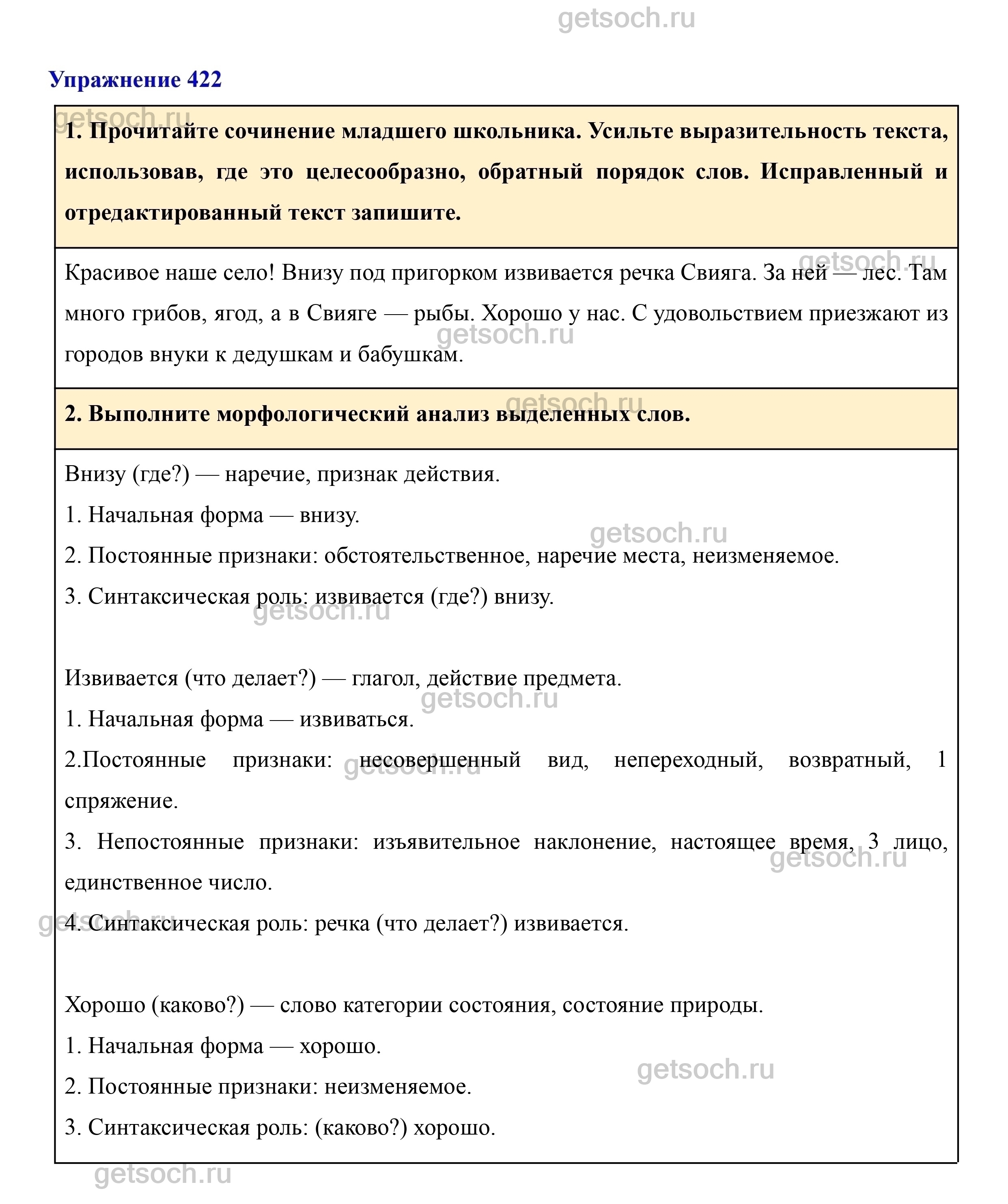 Рассмотрим ответы на Упражнение 422 из учебника по русскому языку для 7 класса Разумовской