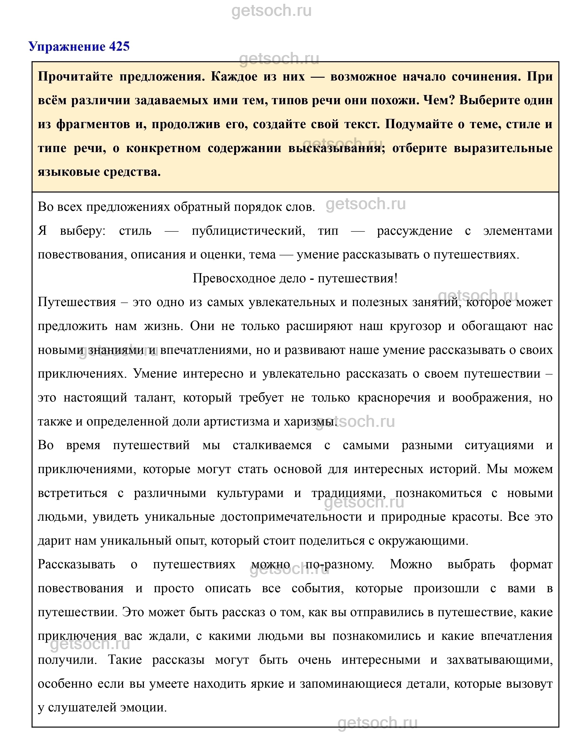 Рассмотрим ответы на Упражнение 425 из учебника по русскому языку для 7 класса Разумовской