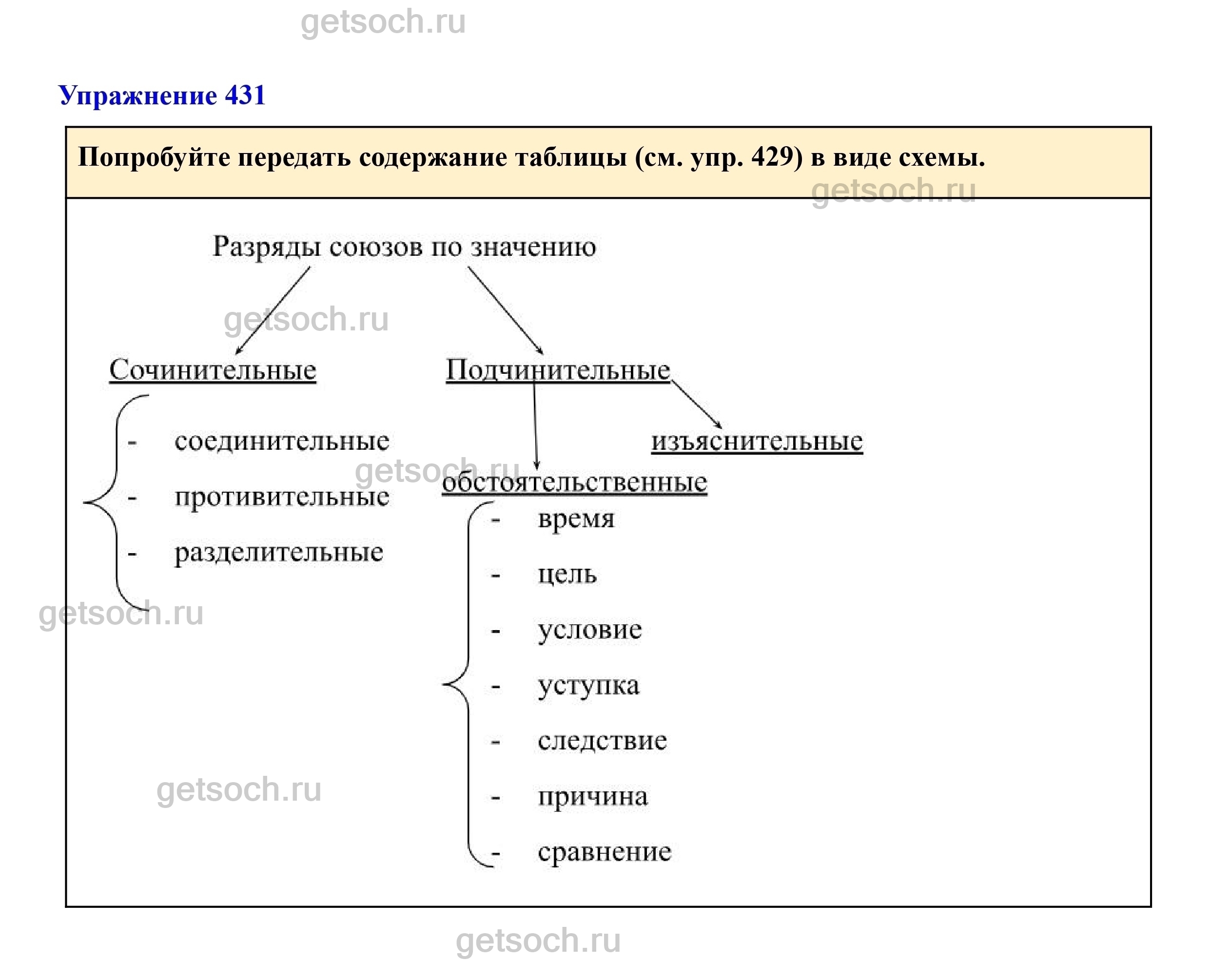 Попробуйте передать содержание таблицы (см. упр. 429) в виде схемы.