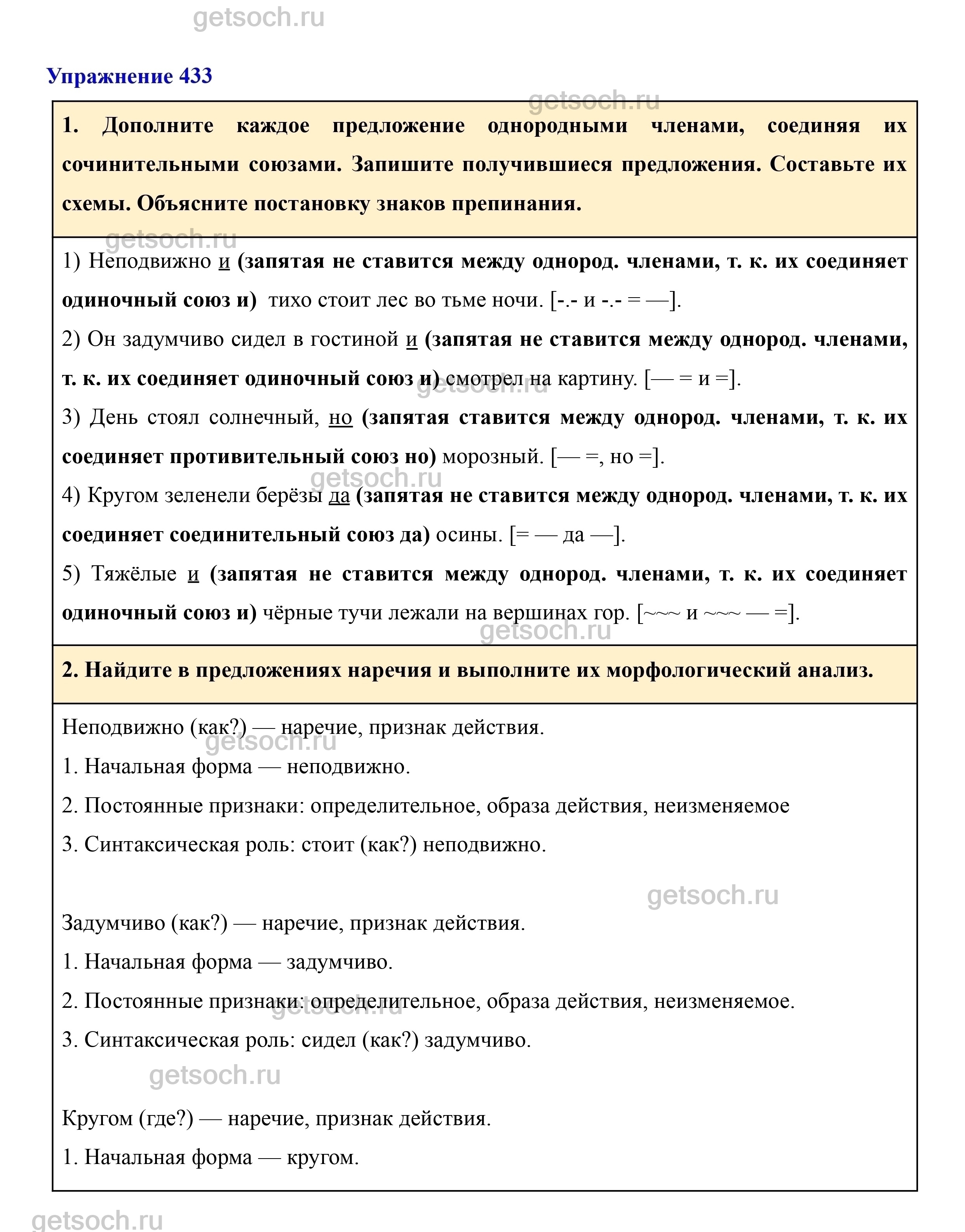 Рассмотрим ответы на Упражнение 433 из учебника по русскому языку для 7 класса Разумовской