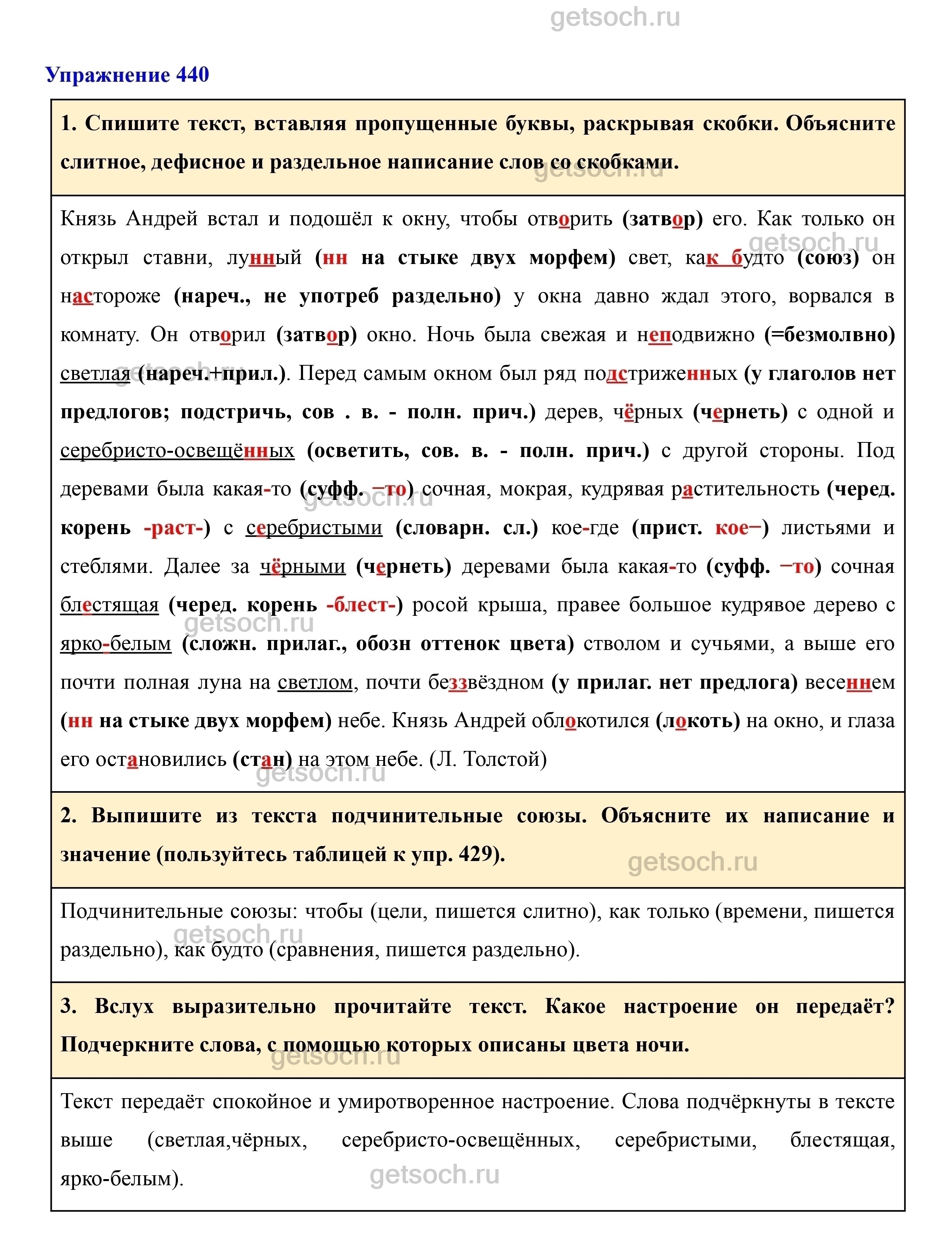 Рассмотрим ответы на Упражнение 440 из учебника по русскому языку для 7 класса Разумовской