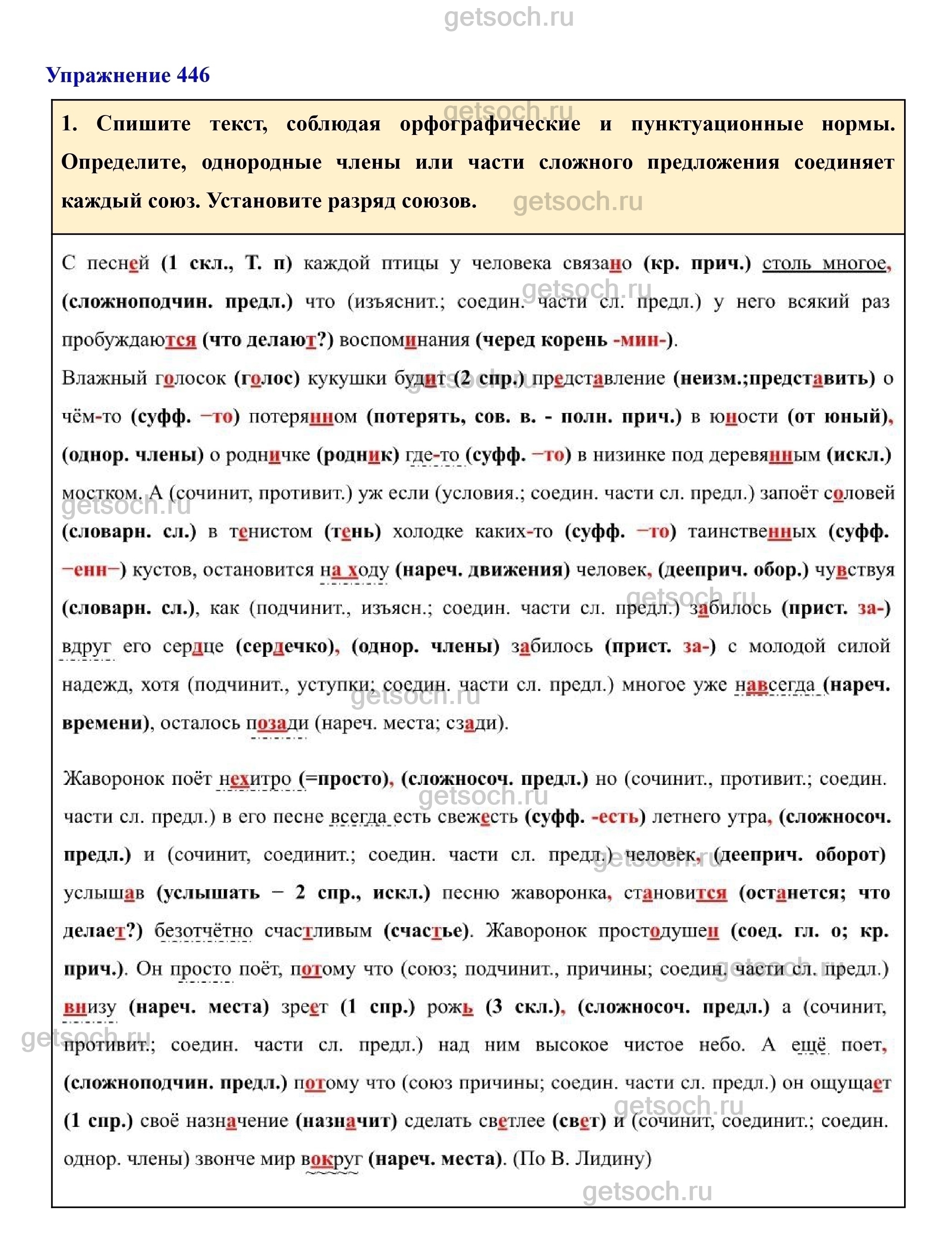 Рассмотрим ответы на Упражнение 446 из учебника по русскому языку для 7 класса Разумовской