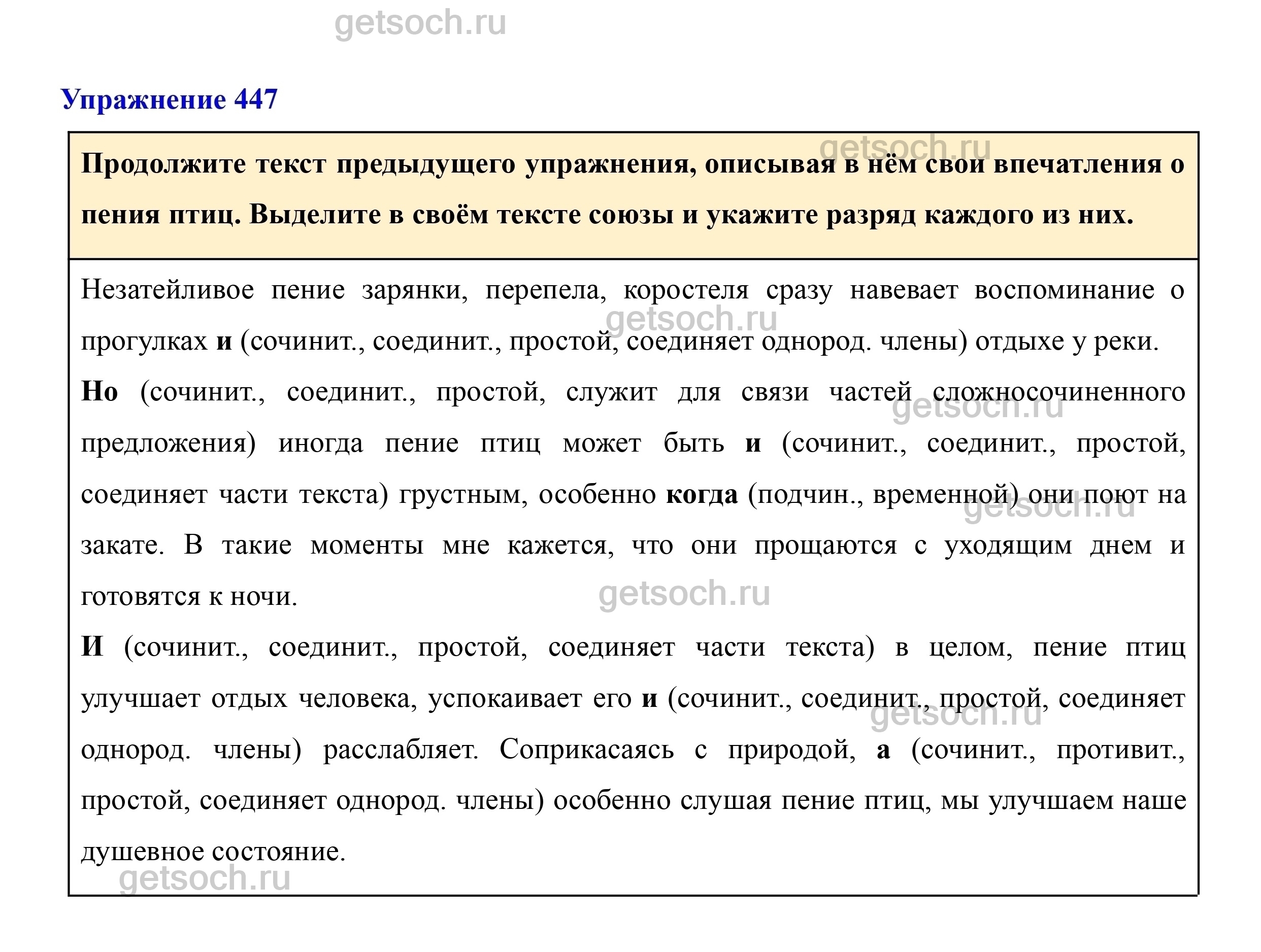 Рассмотрим ответы на Упражнение 447 из учебника по русскому языку для 7 класса Разумовской