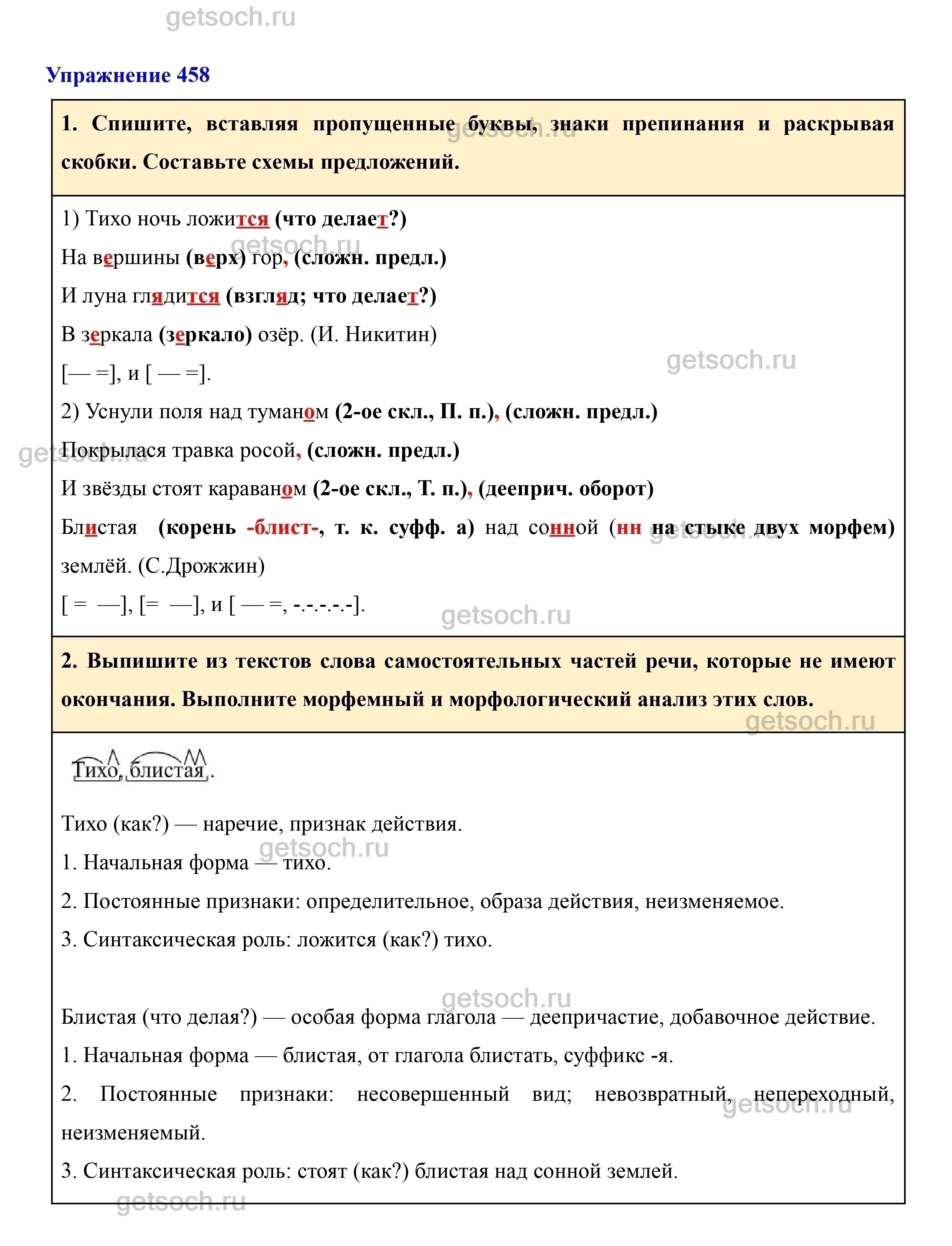 Рассмотрим ответы на Упражнение 458 из учебника по русскому языку для 7 класса Разумовской