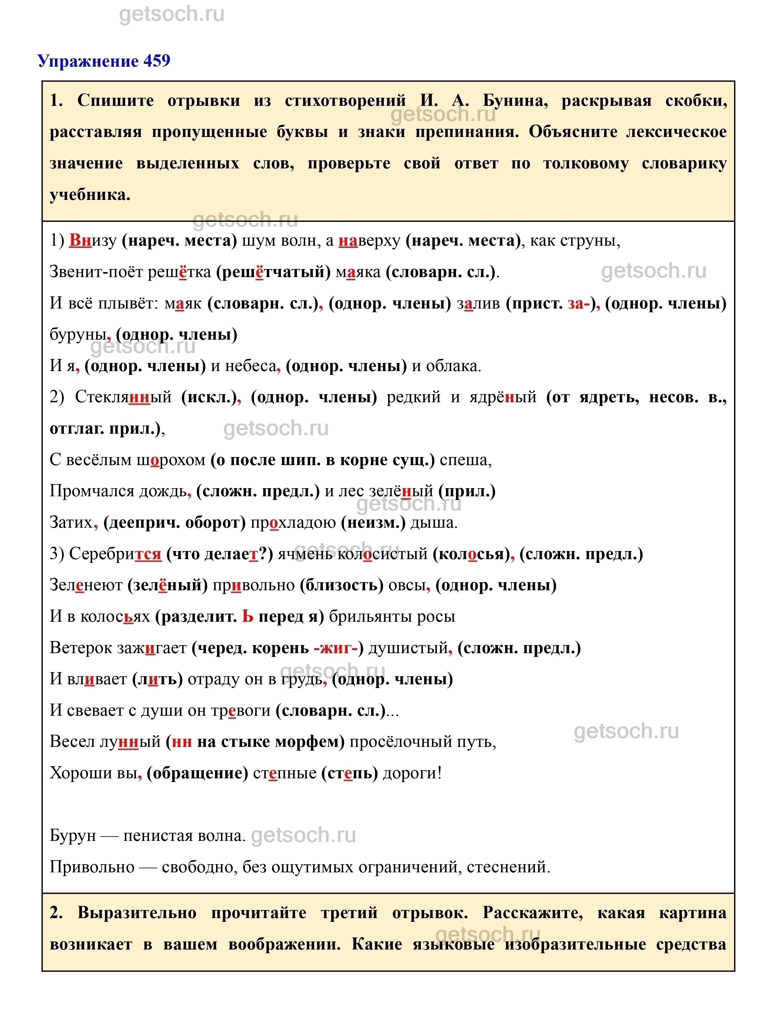 Рассмотрим ответы на Упражнение 459 из учебника по русскому языку для 7 класса Разумовской
