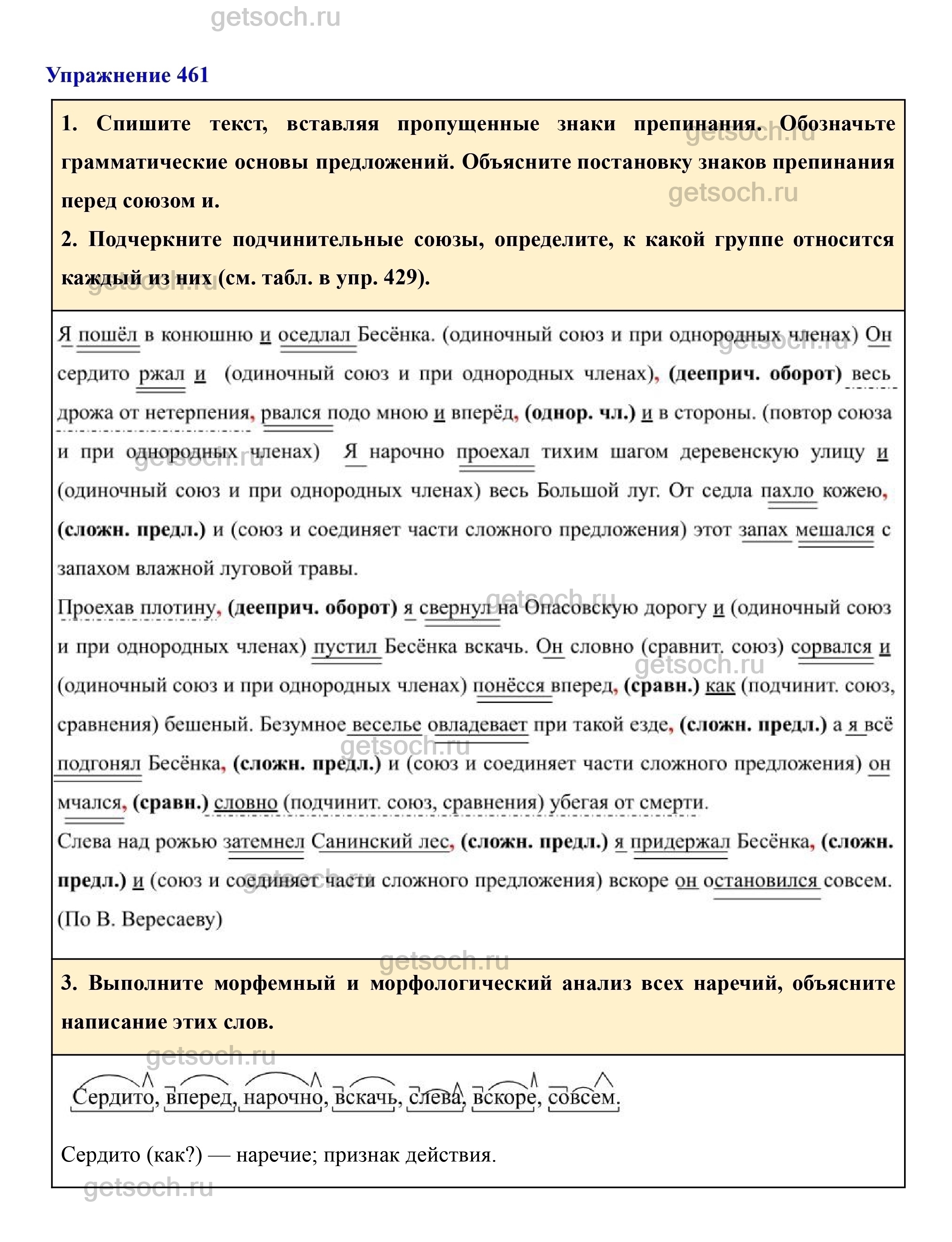 Рассмотрим ответы на Упражнение 461 из учебника по русскому языку для 7 класса Разумовской