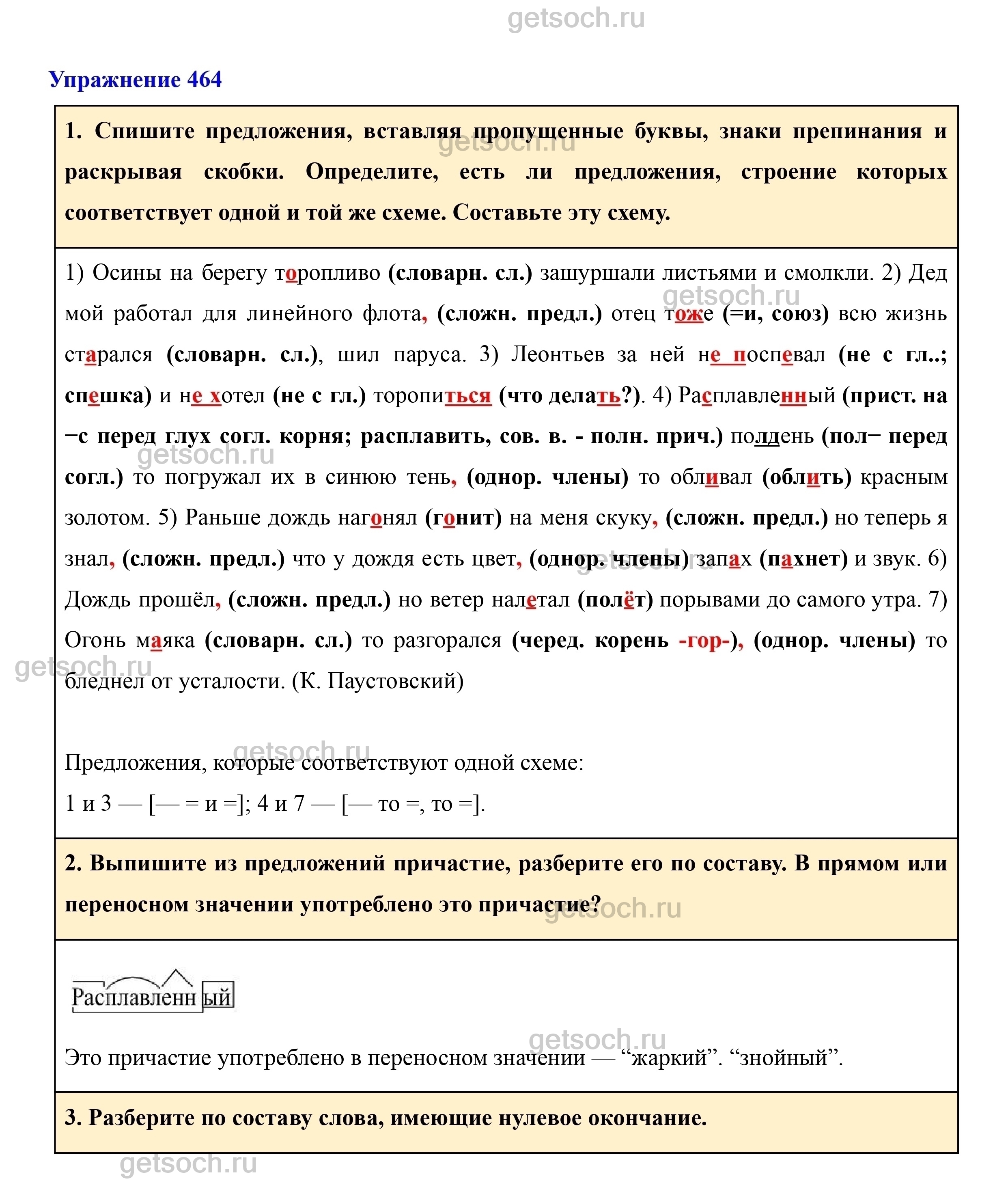 Рассмотрим ответы на Упражнение 464 из учебника по русскому языку для 7 класса Разумовской