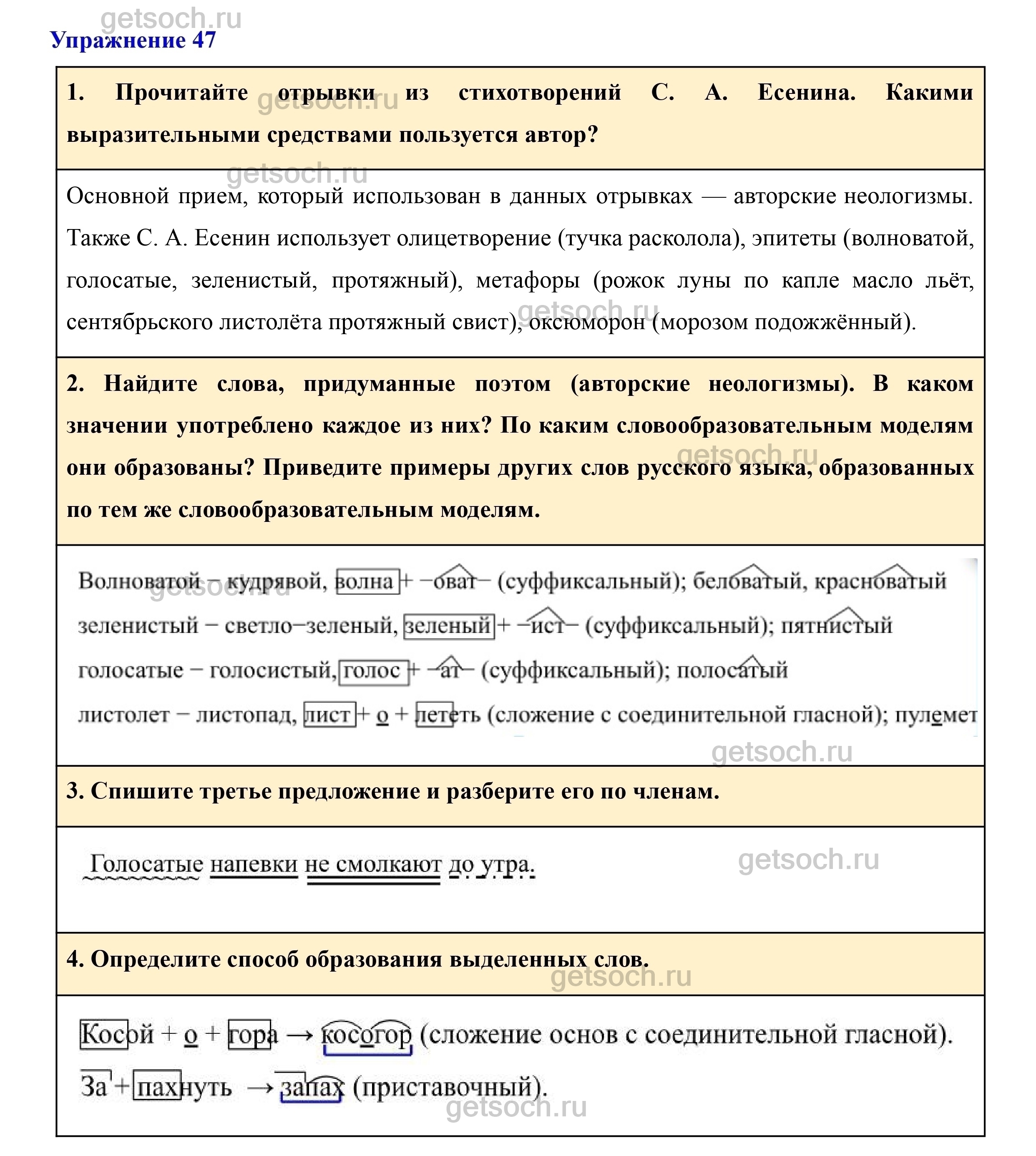 Рассмотрим ответы на Упражнение 47 из учебника по русскому языку для 7 класса Разумовской