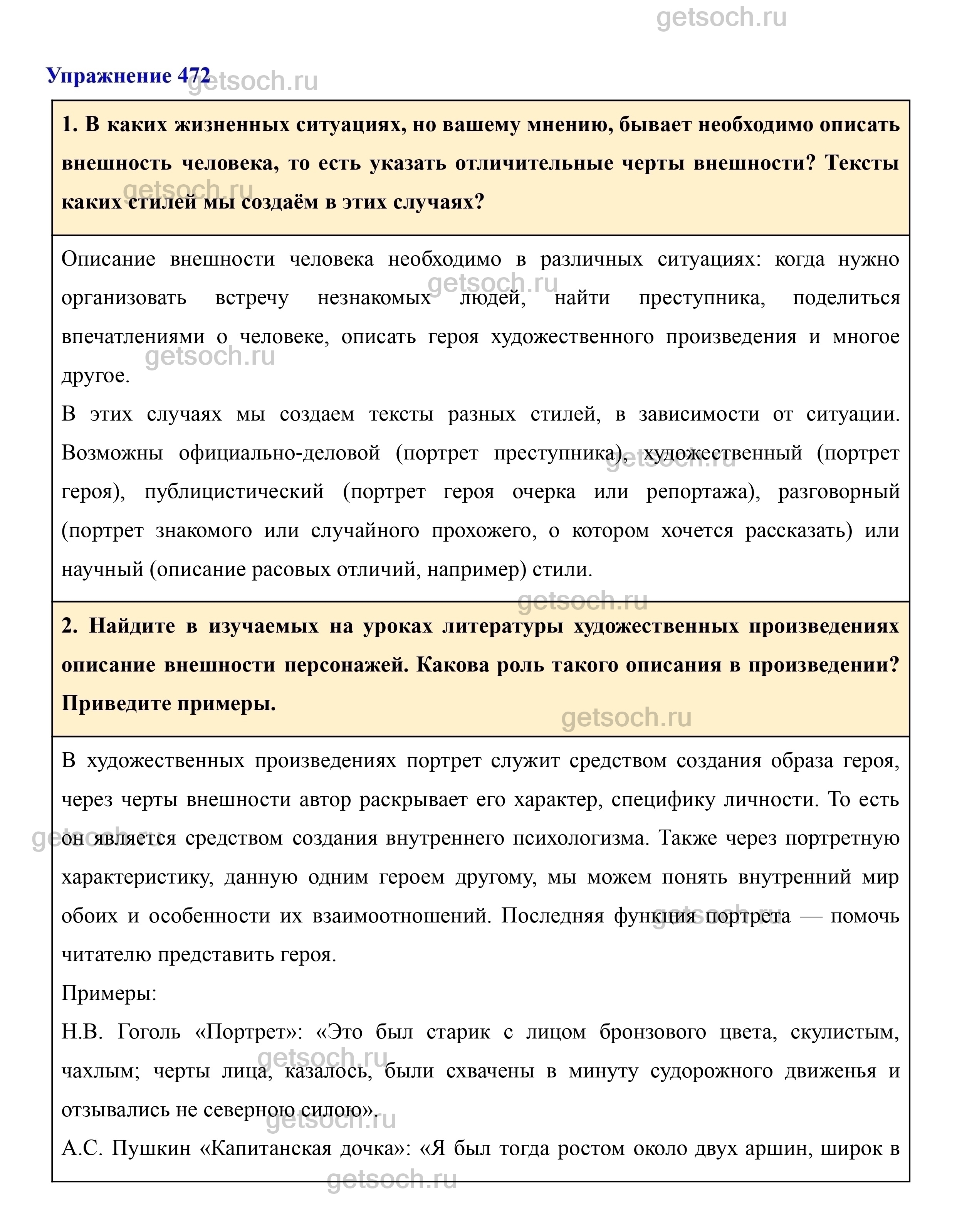 Рассмотрим ответы на Упражнение 472 из учебника по русскому языку для 7 класса Разумовской