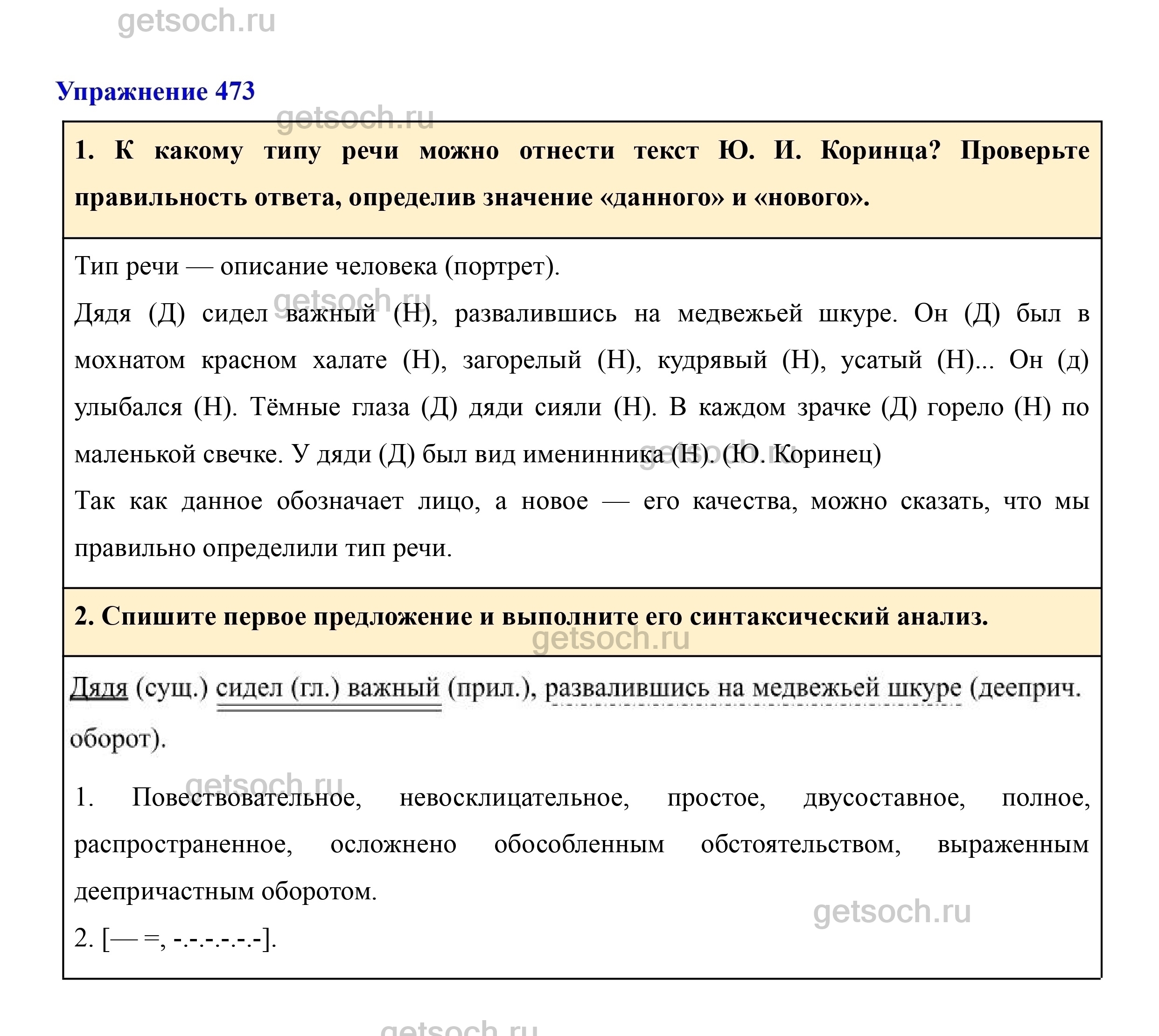 Рассмотрим ответы на Упражнение 473 из учебника по русскому языку для 7 класса Разумовской