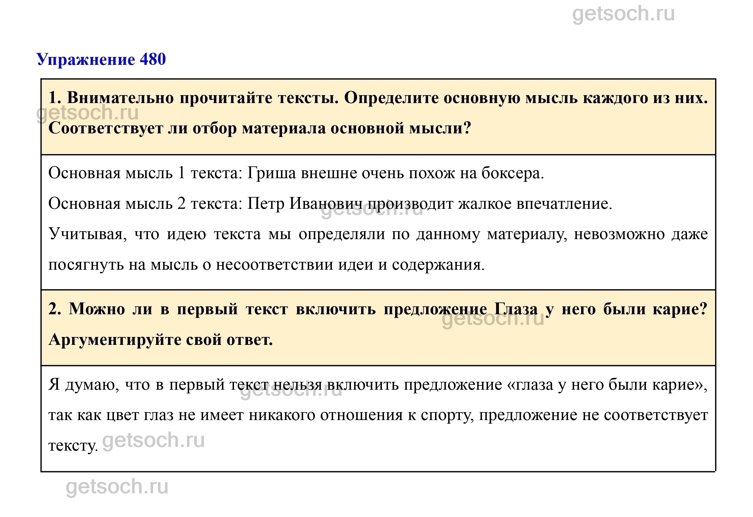 Рассмотрим ответы на Упражнение 480 из учебника по русскому языку для 7 класса Разумовской
